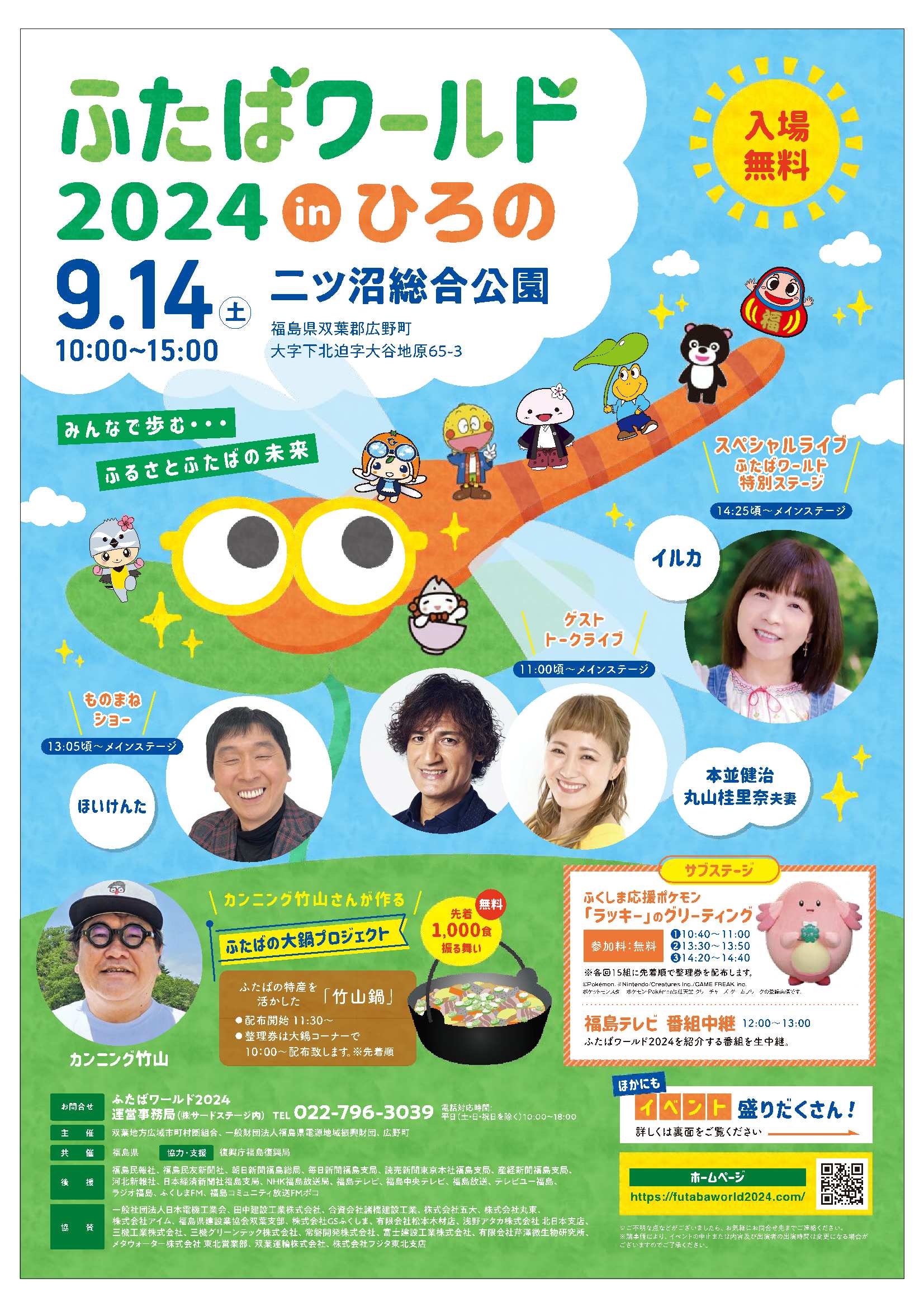 ・歌手のイルカさんによるスペシャルライブ、お笑い芸人のほいけんたさんによるモノマネショー、本並健治・丸山桂里奈夫妻によるトークライブ、地元団体による双葉地方の伝統芸能など