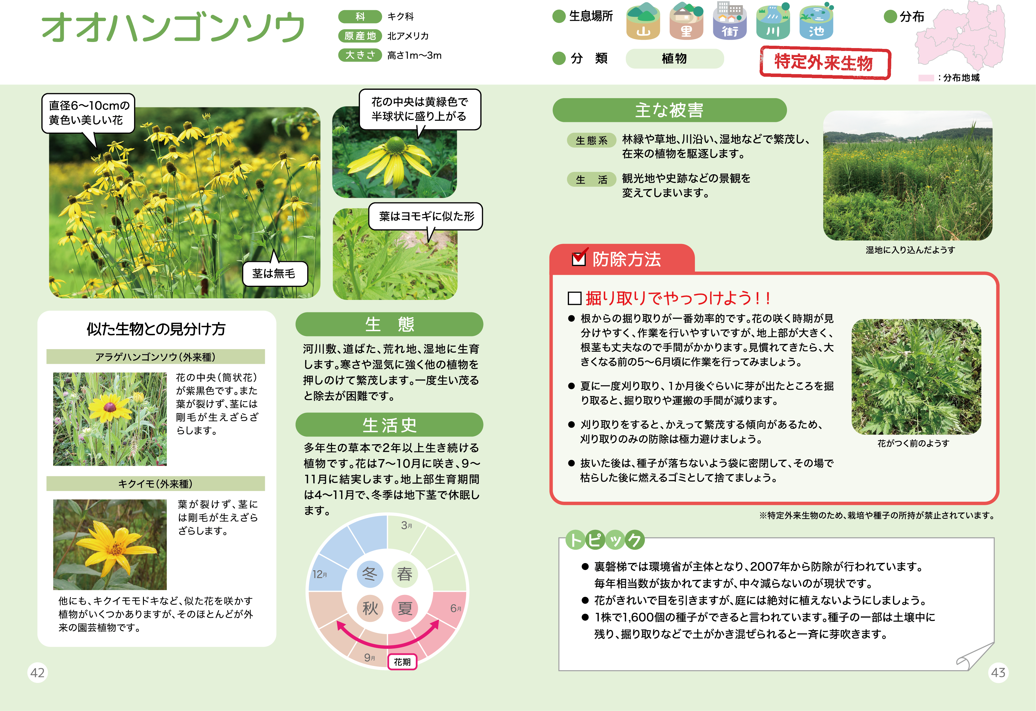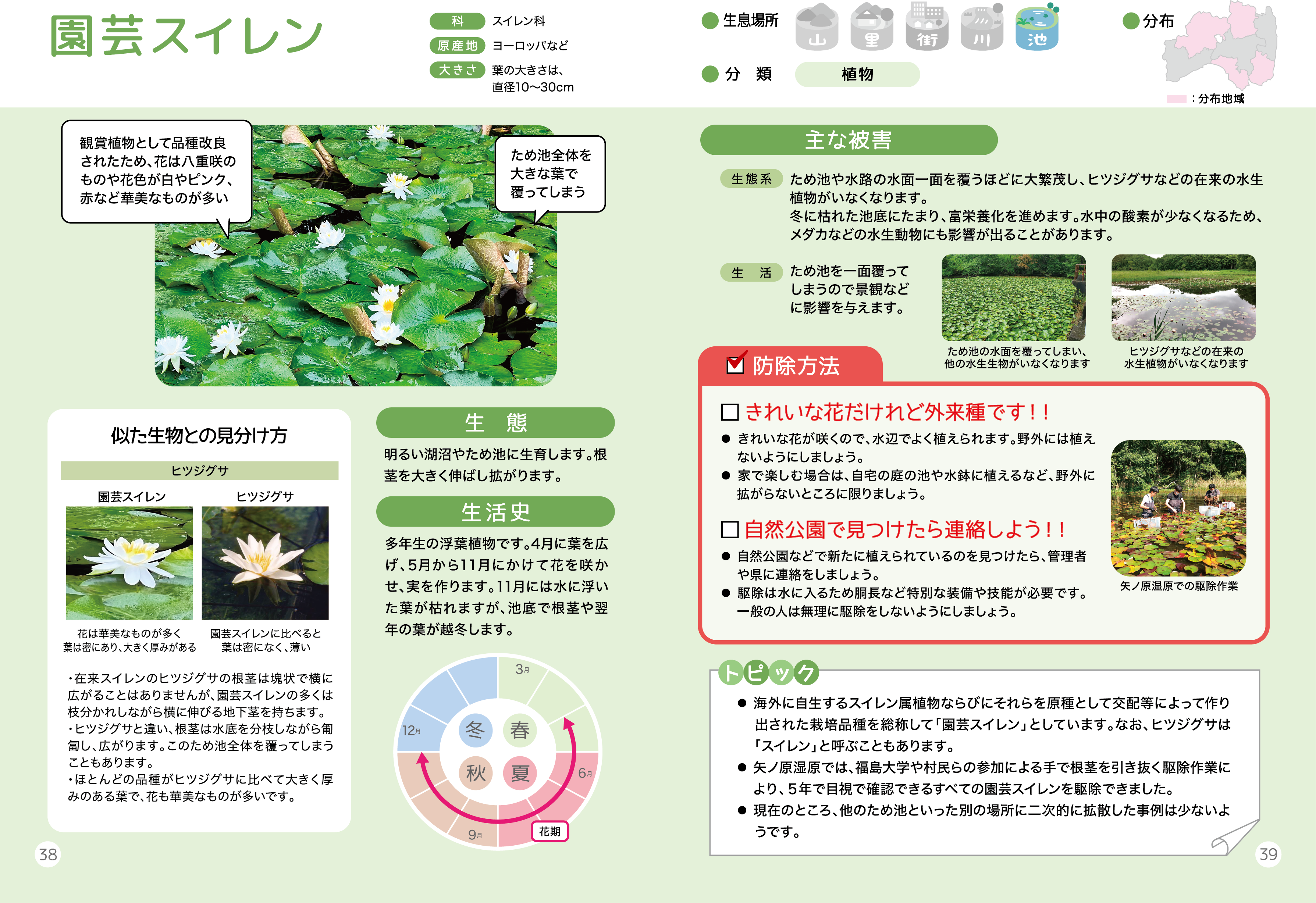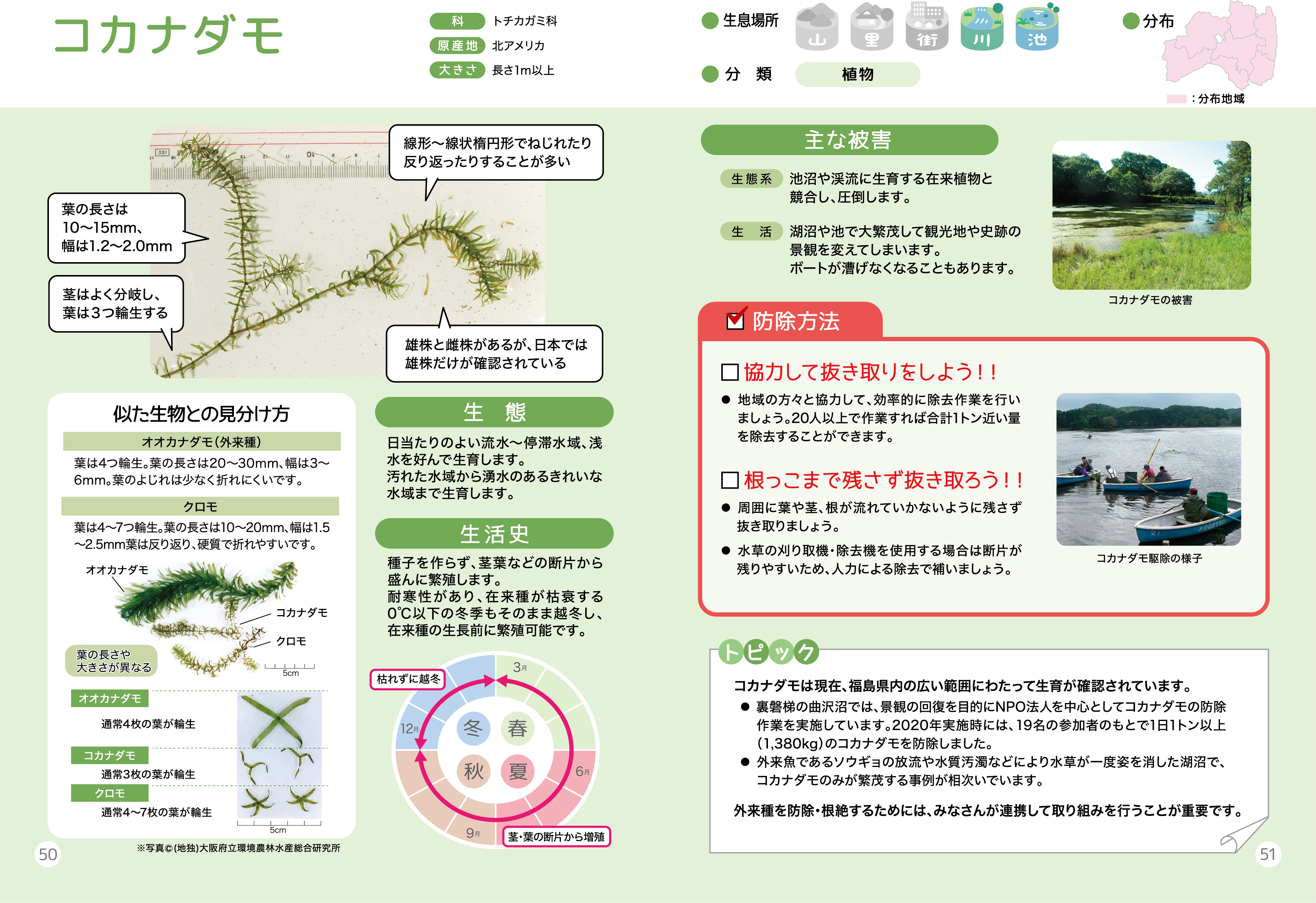 福島県の豊かな生態系やみなさんの暮らしを脅かすおそれのある外来種を28種ピックアップし、その特徴や防除方法をまとめたハンドブックを作成しました。