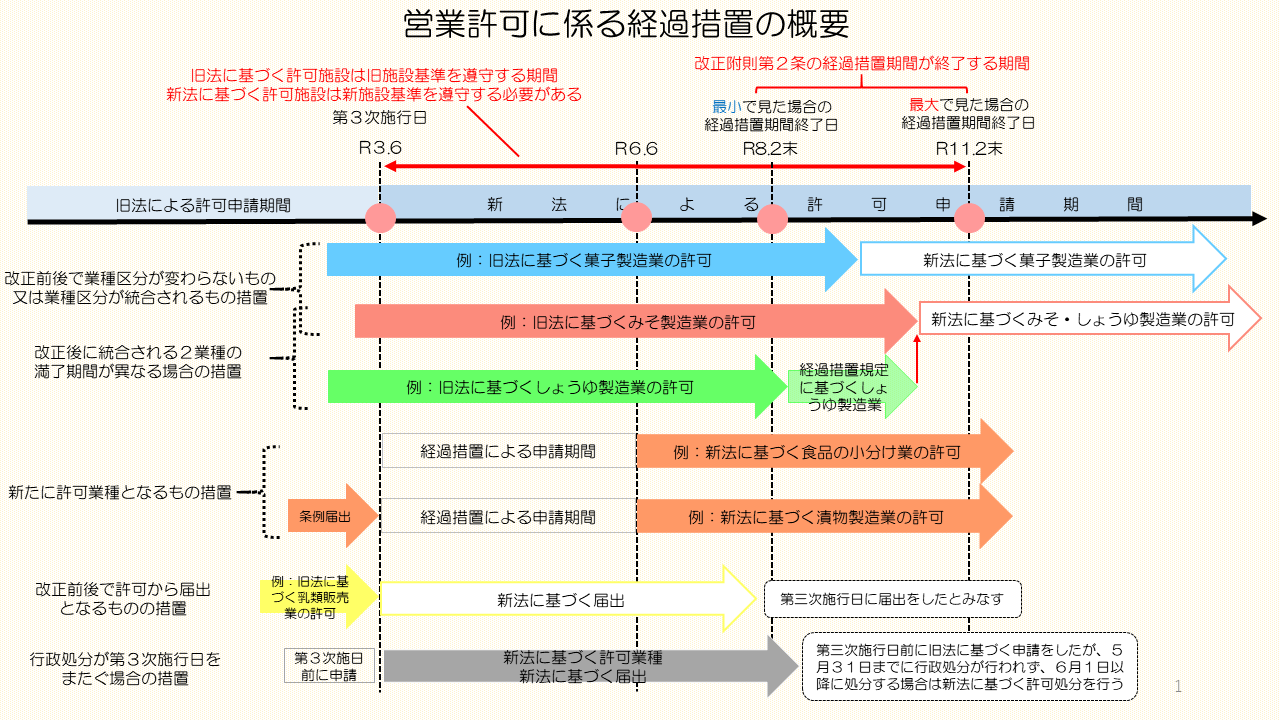 ※法改正後の営業許可にかかる経過措置の考え方については以下の図をご参照ください。