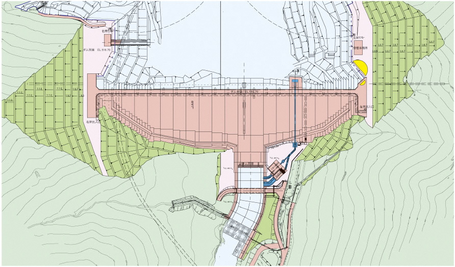 約4,500ヘクタールの受益地(田畑)に水を供給するために建設された農業用利水ダムです。1級河川阿賀野川水系
