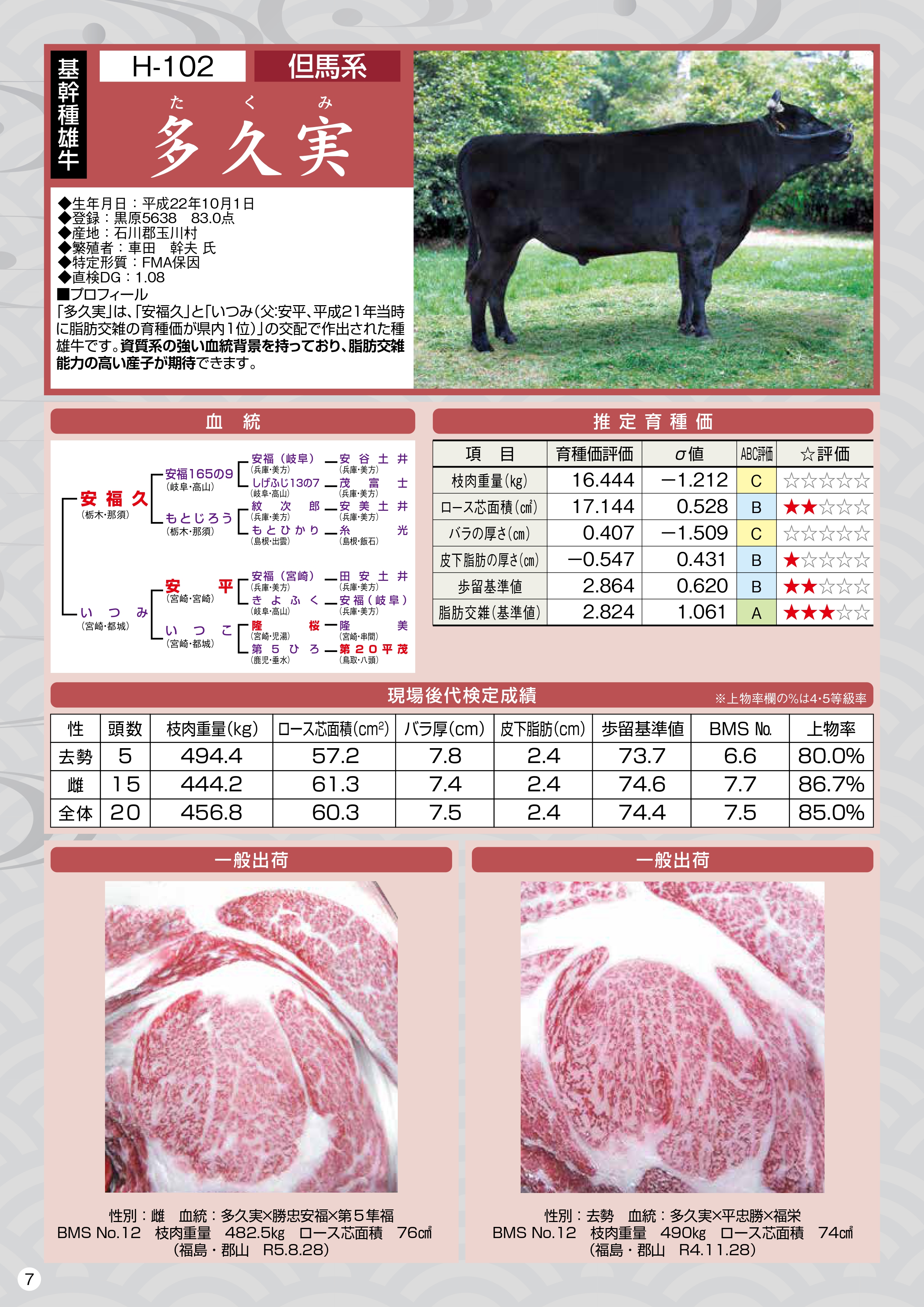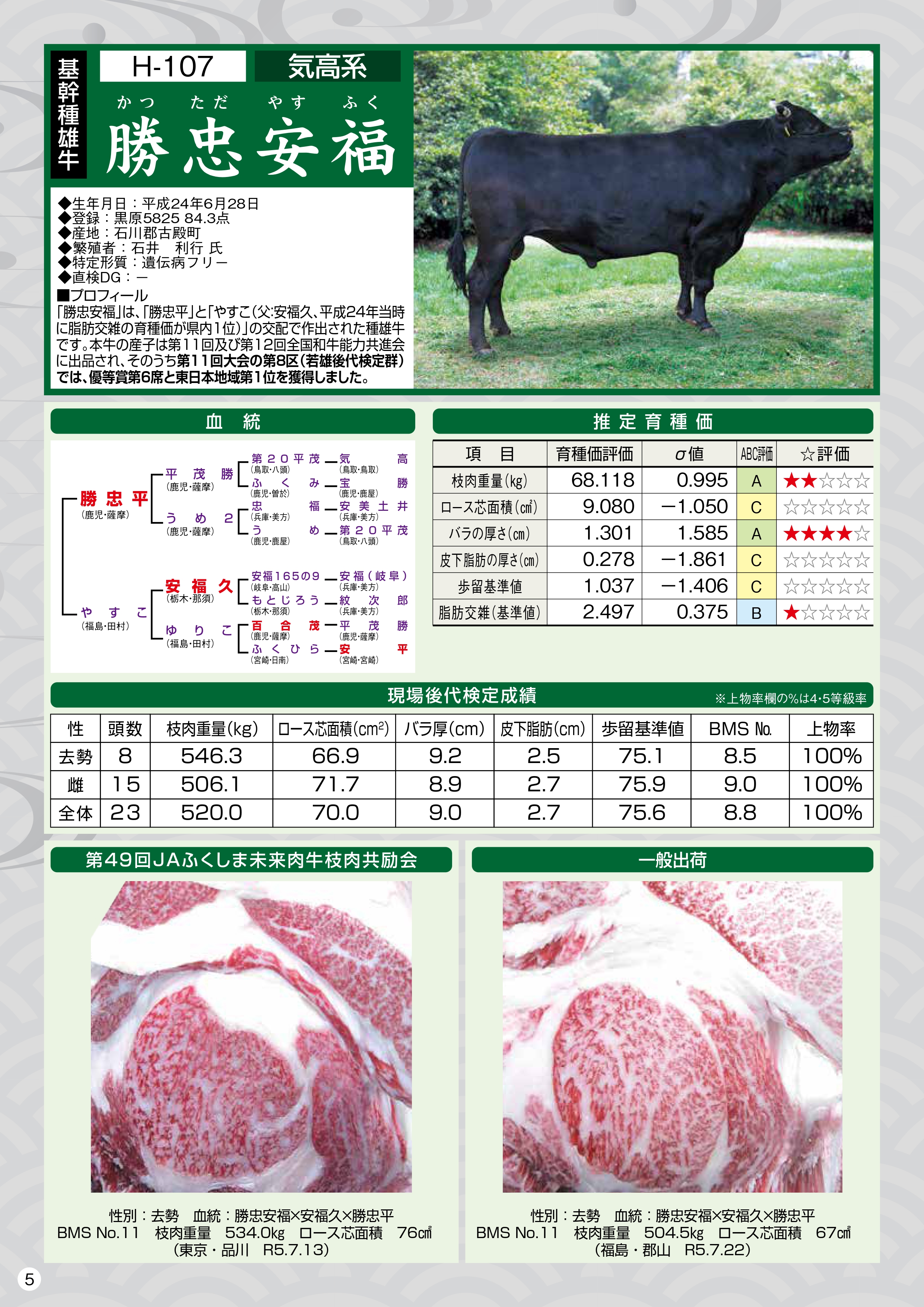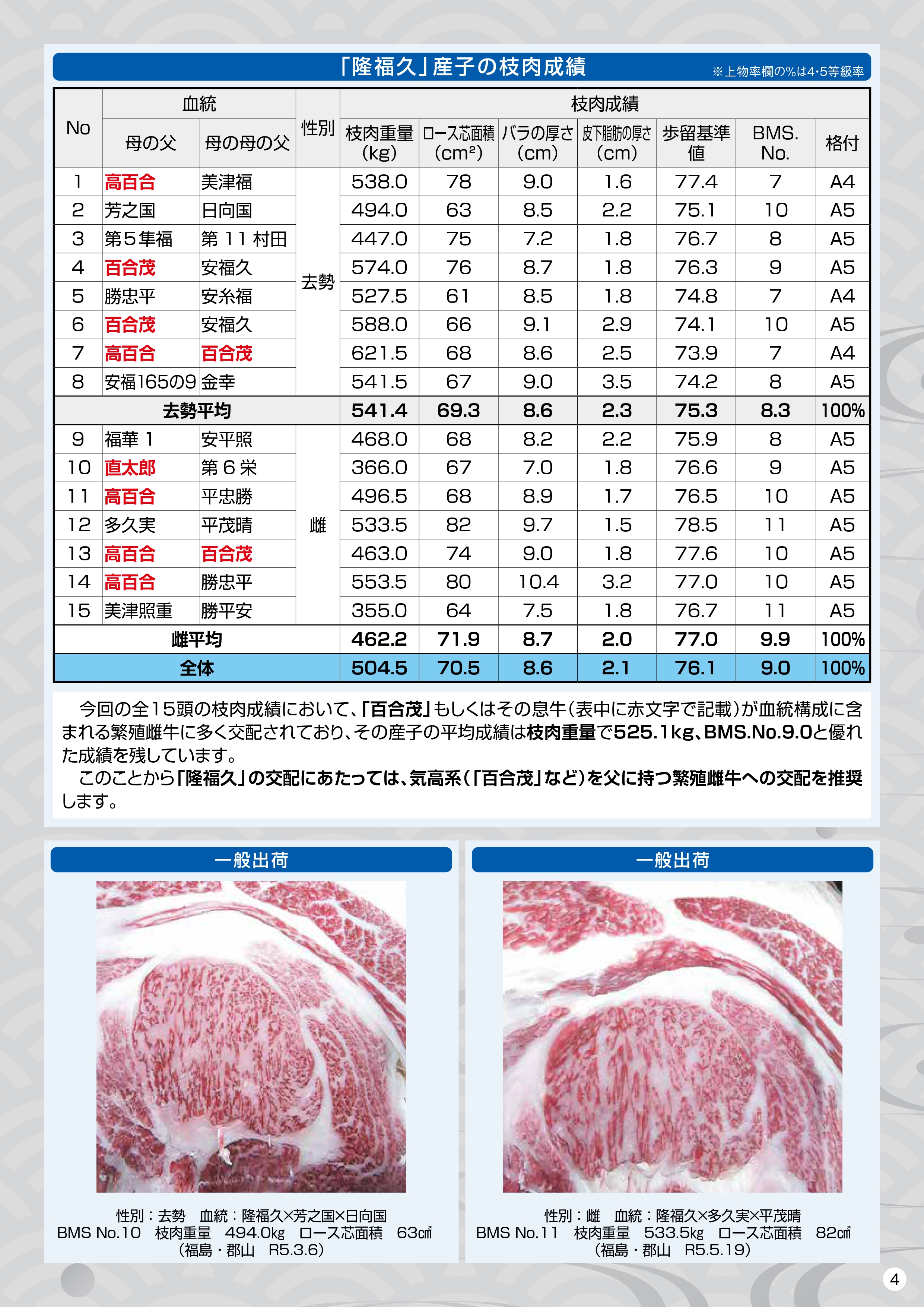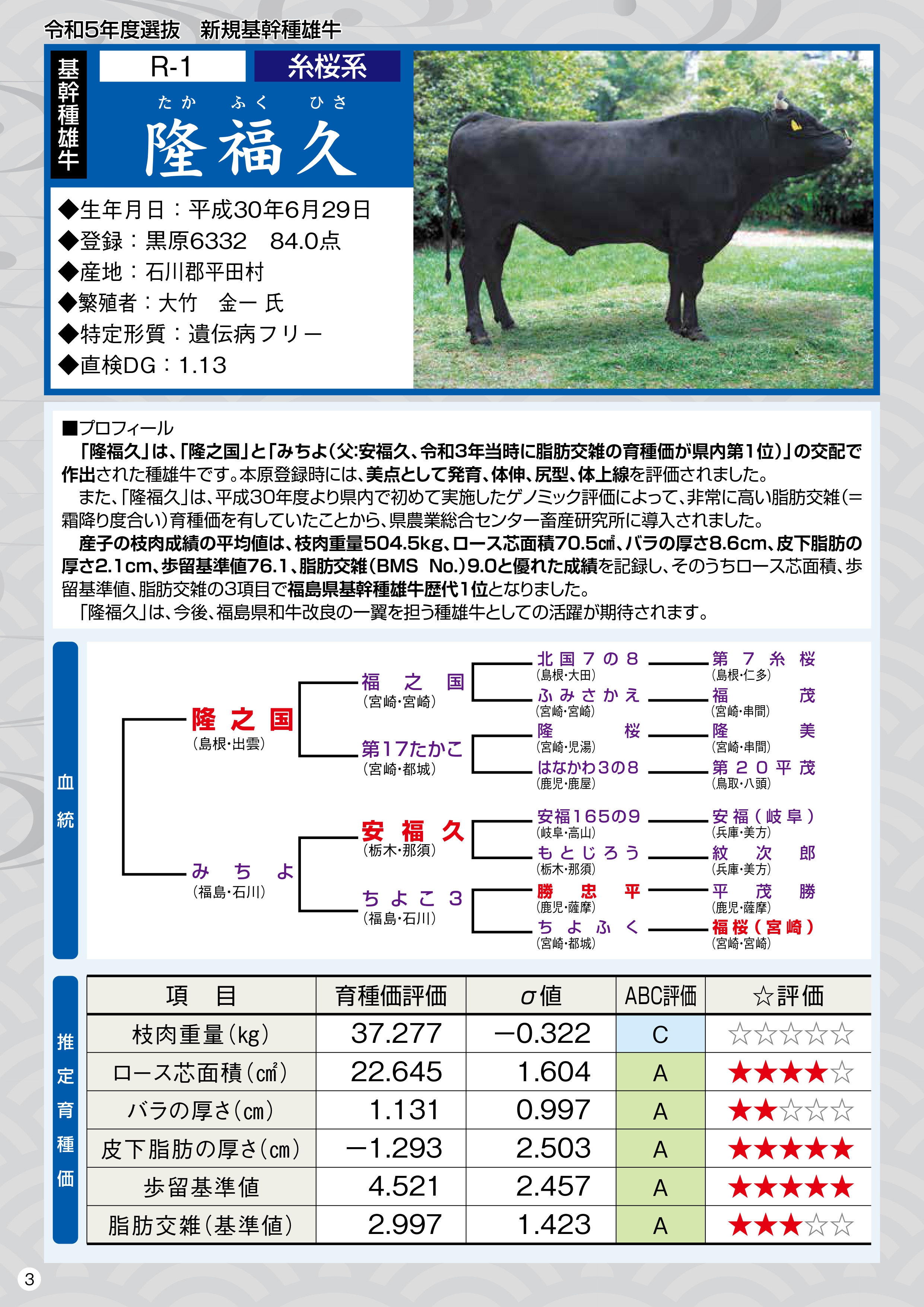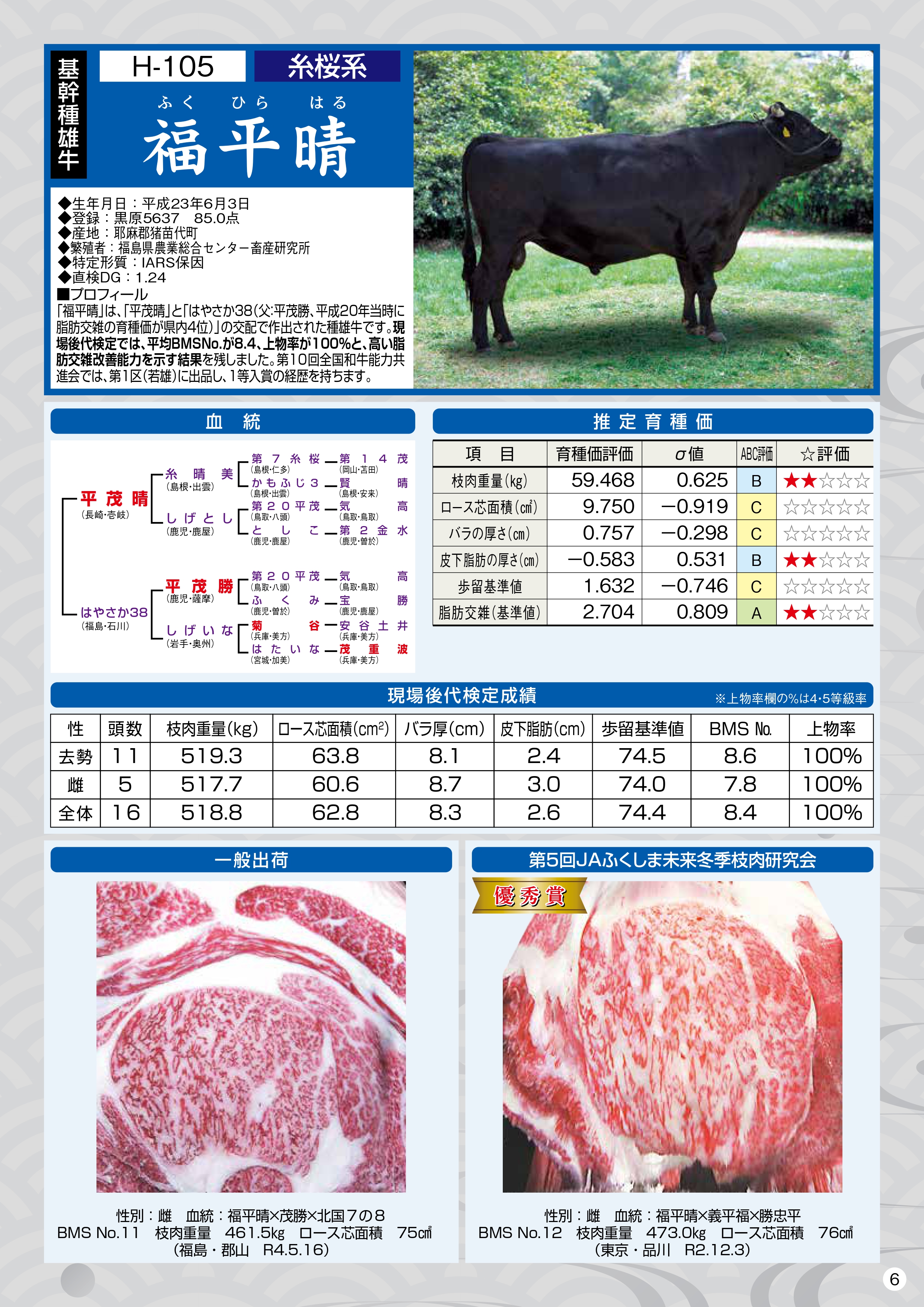 (公益社団法人 全国和牛登録協会福島県支部 令和5年9月評価より抜粋)