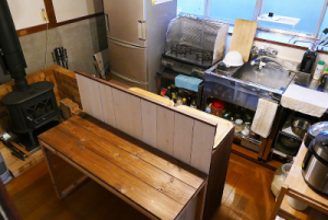 「改修工事は、古民家の雰囲気と断熱を重視。水まわりとリビング・ダイニングに絞り込んで手を入れました」。工務店を決める際は、2社に見積りを依頼したそうです。リフォームのセンスはホームページでチェック。「親切で丁寧そうな業者にしました。自分で手掛けたい部分もあったので、その辺を相談しながら値引き交渉もしました」と友紀さん。最終的に業者に依頼したのは、リビング・ダイニングの断熱と床張り、二重窓、土間の天井張りだったそうです。