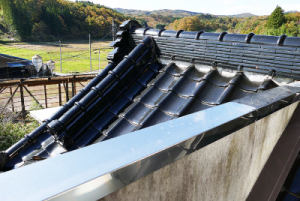 既存と同じ和瓦で屋根を修理。ベランダは、手すり壁に被せる笠木部分を新しいステンレスにして雨漏り対策。 |