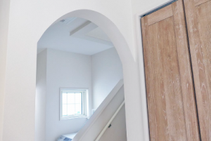 キッチンの脇に設えたアーチ壁。曲線が空間を優しい雰囲気にしています。 |