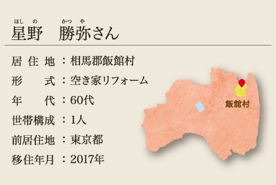 移住して丸2年。星野さんは、飯舘村に訪問看護ステーションを立ち上げるべく、準備を進めています。事務所は、住宅とセットで購入した土蔵を自分で改装して使う予定とのこと。「空き家って期待通りのものはありません。与えられた条件に刺激されてイメージが膨らんで来るというか。どう活用して暮らしていくかに醍醐味があるように思います。私にとっての住まいは、資産ではなく人と関わるツール。これからもいろいろ手を加えていきたいと思っています」と話してくださいました。