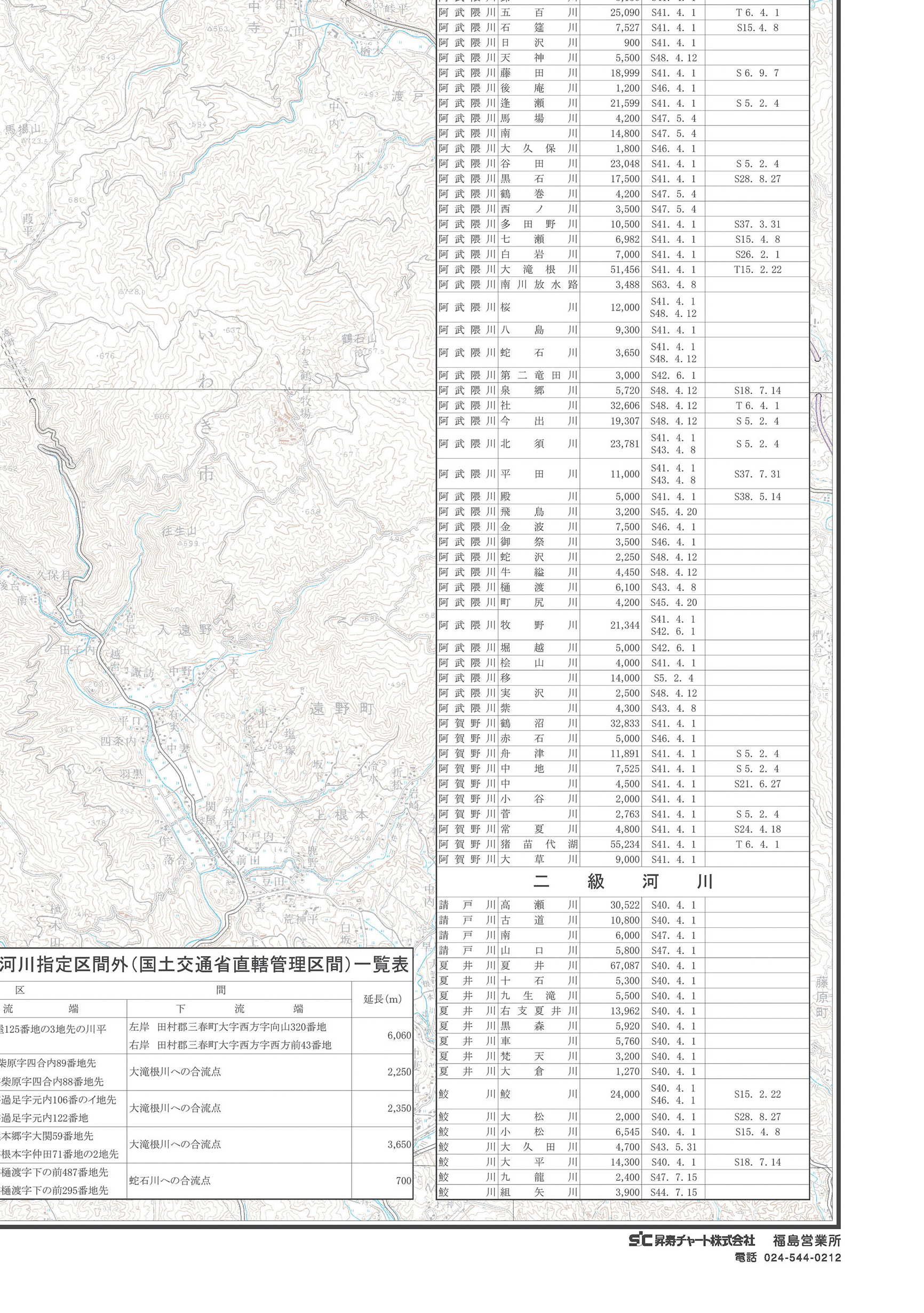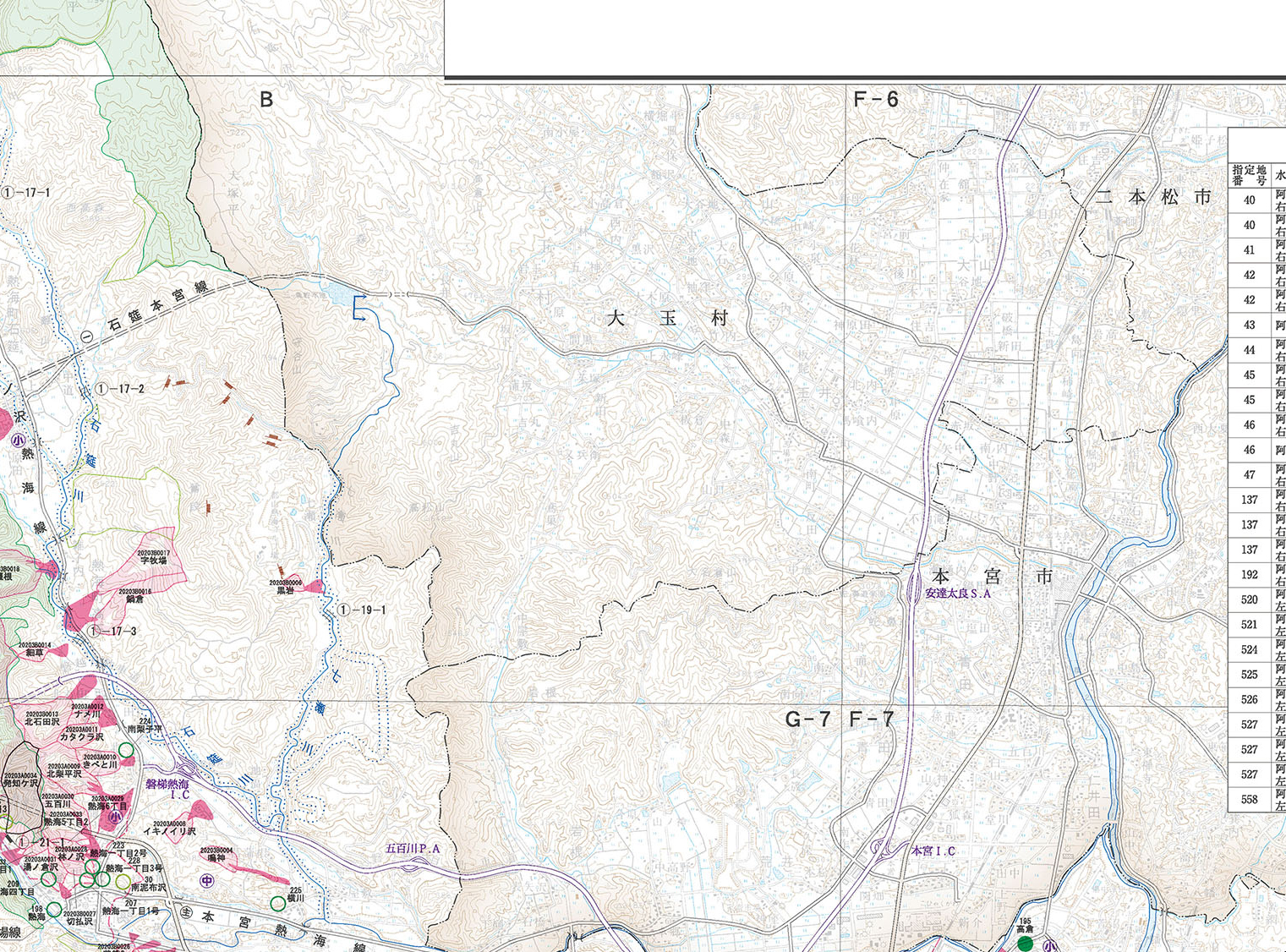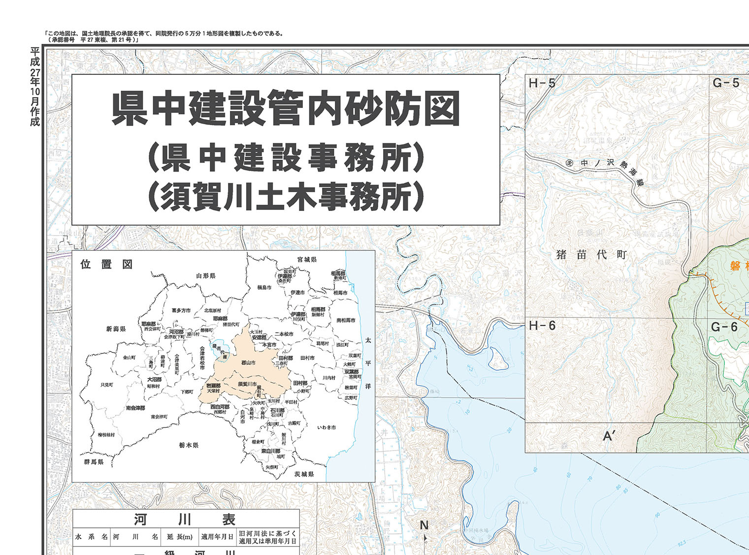5万分の1の縮尺ですので、正式に区域を確認する際は、必ず県中建設事務所河川砂防課または区域の存する市町村にお問い合わせください。