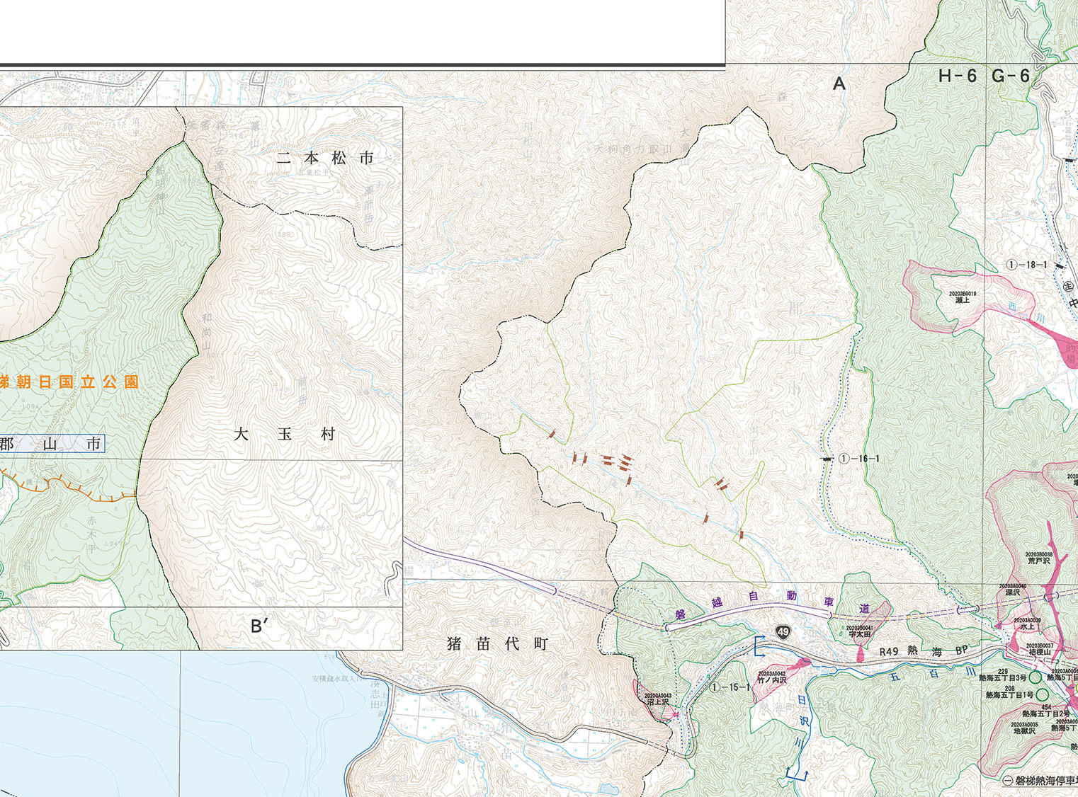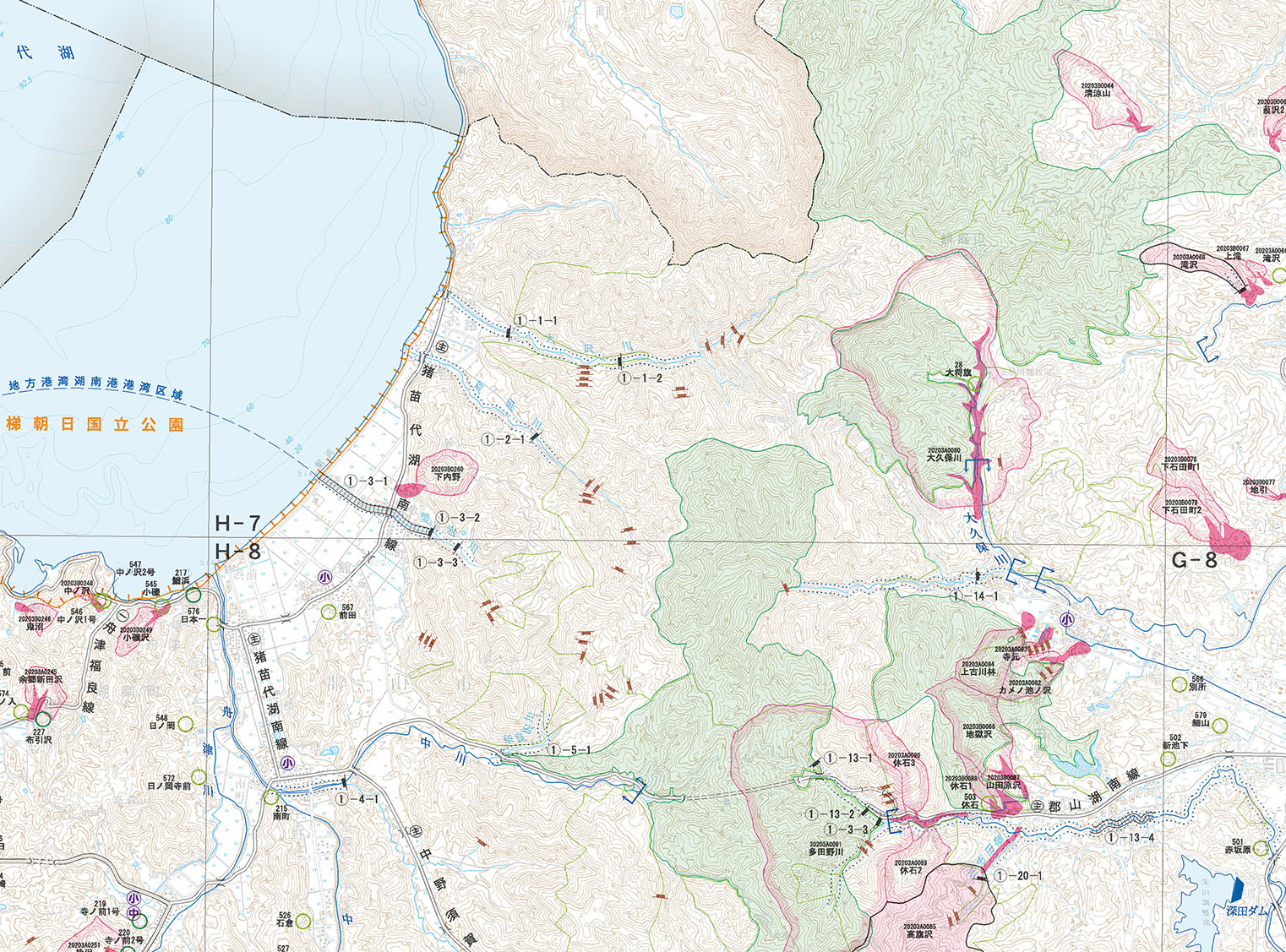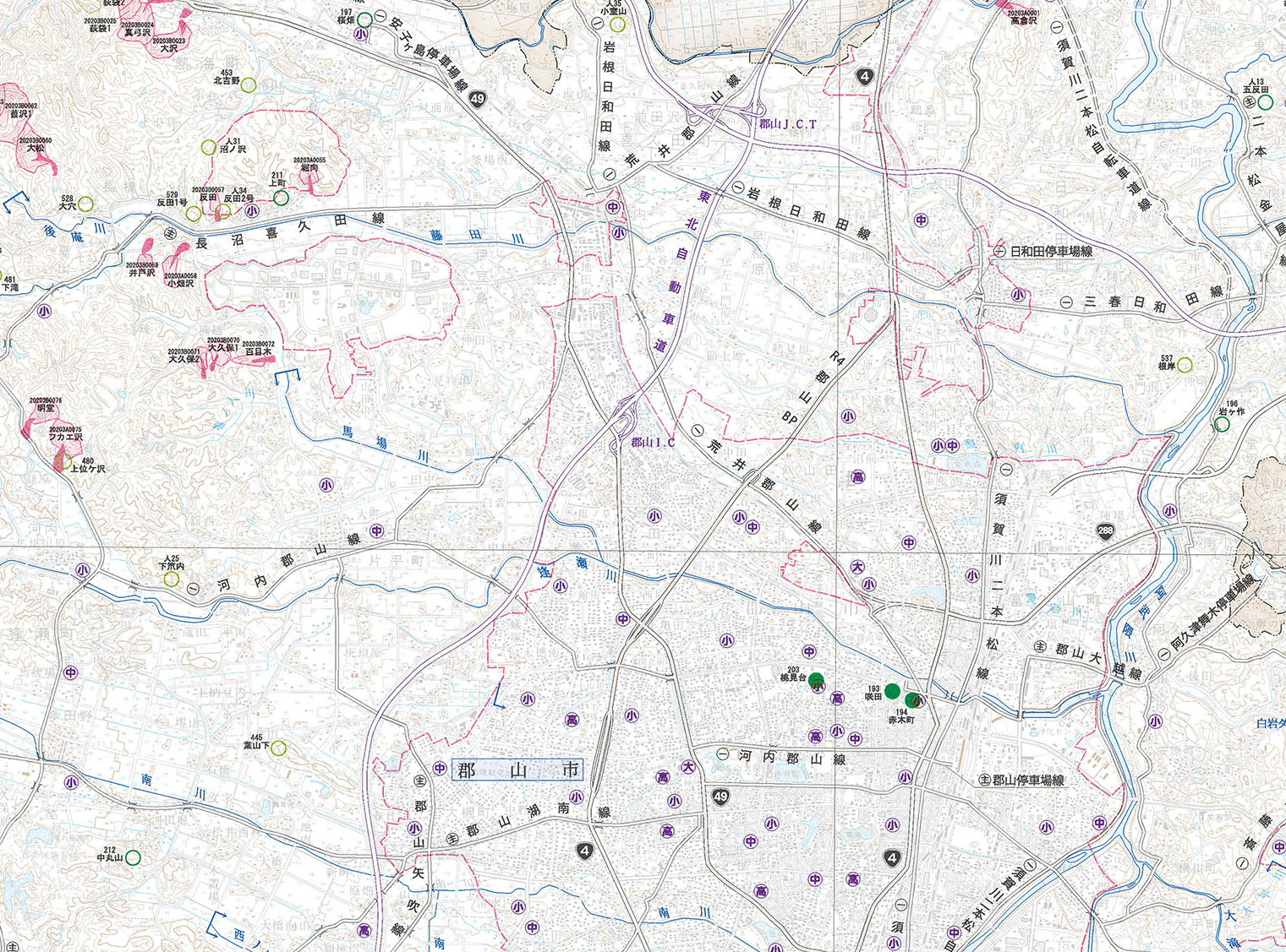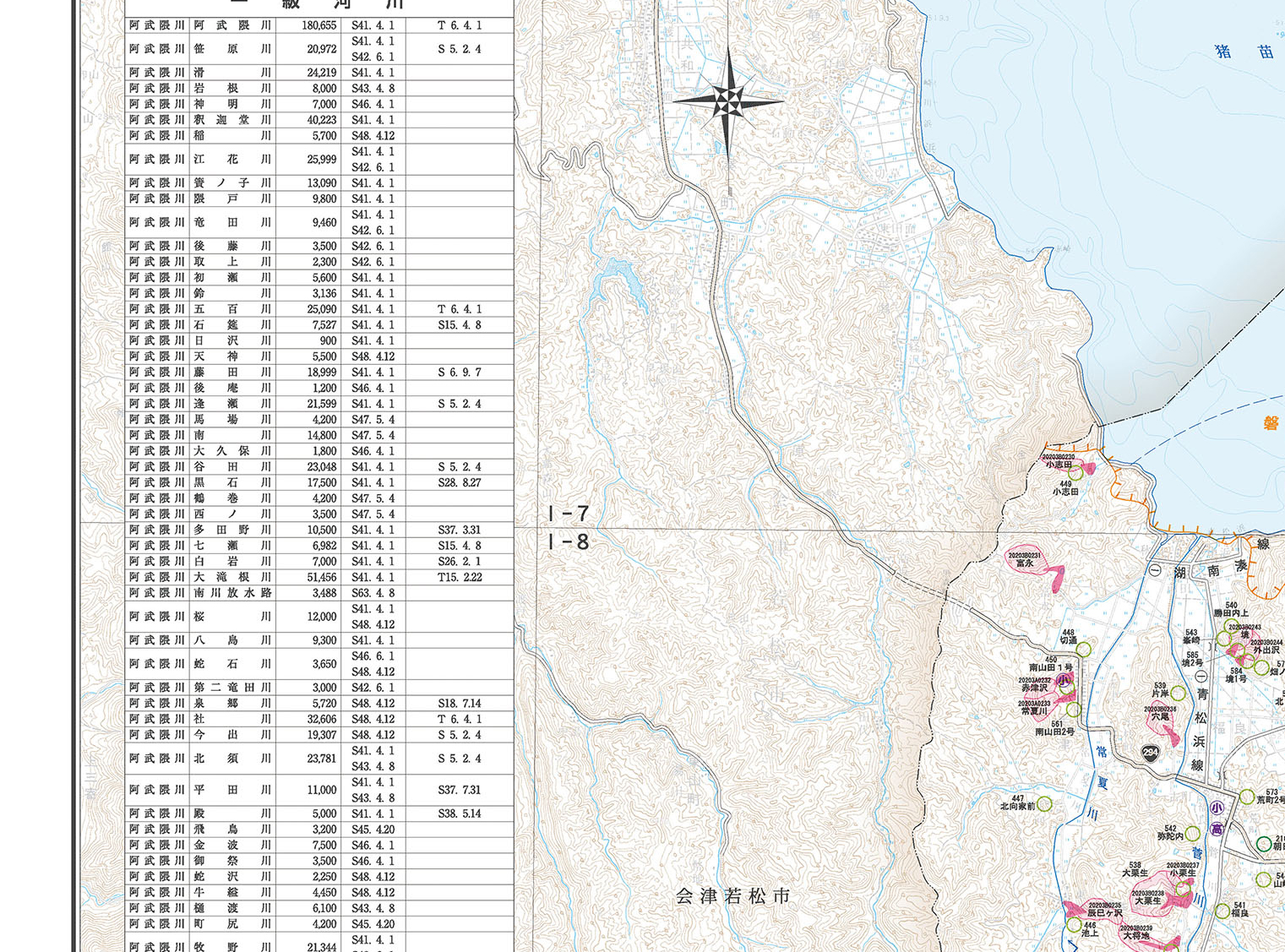 5万分の1の縮尺ですので、正式に区域を確認する際は、必ず県中建設事務所河川砂防課または区域の存する市町村にお問い合わせください。