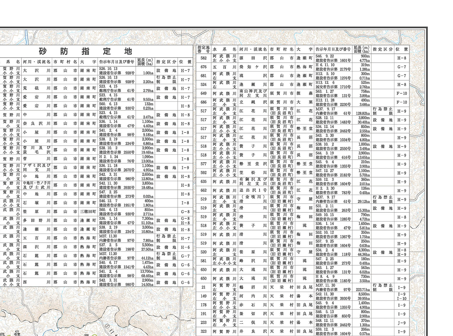 砂防指定地・・・砂防法(明治30年3月30日法律第29号)第2条に基づき、治水上砂防のための砂防設備を要する土地または一定の行為を禁止し若しくは制限すべき土地として、国土交通大臣が指定した区域です。