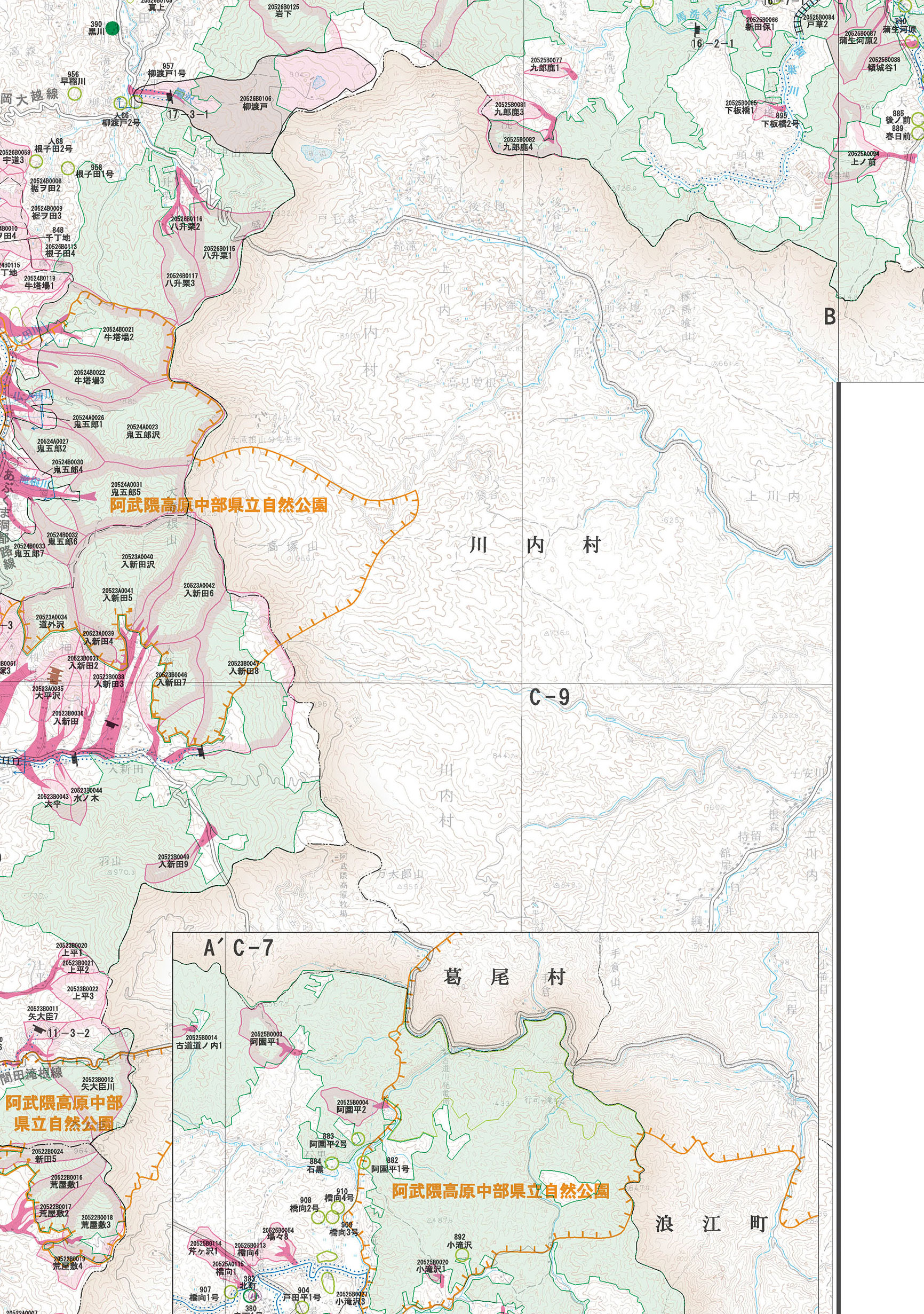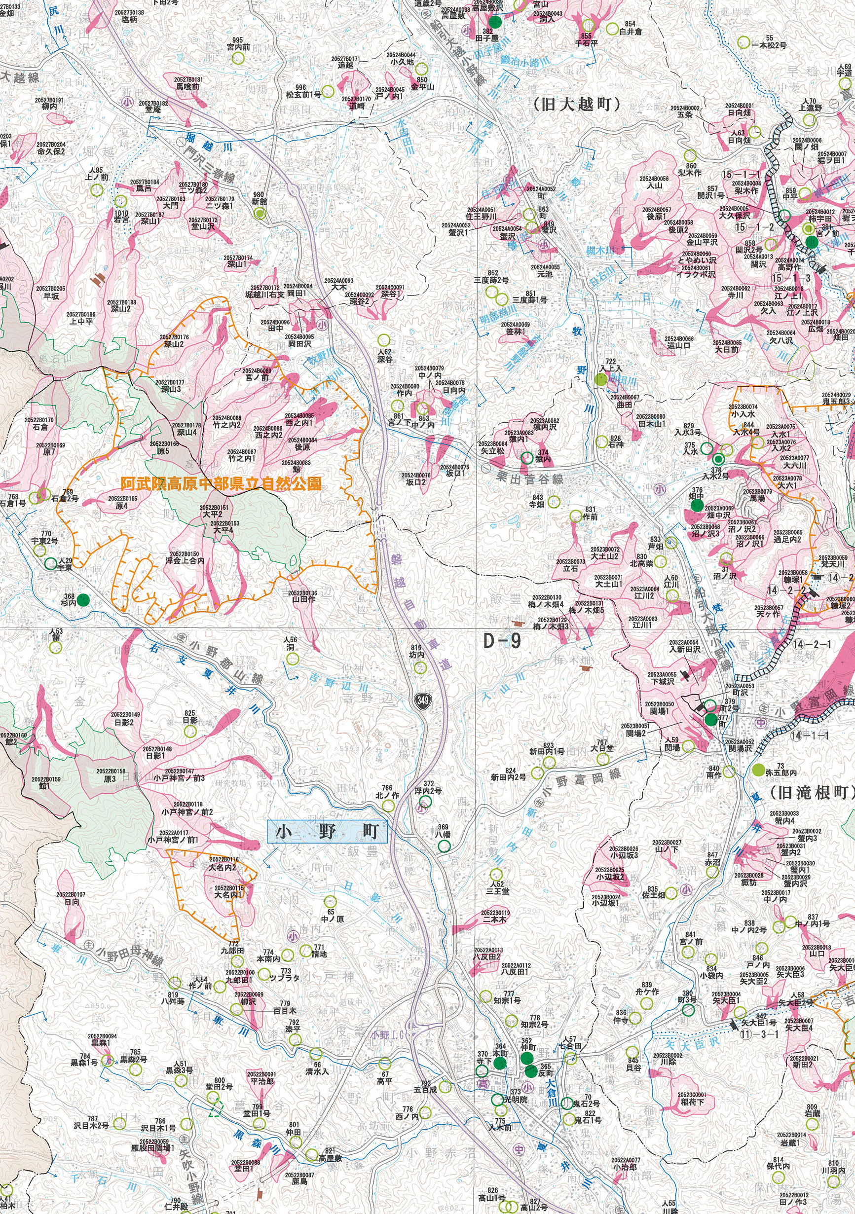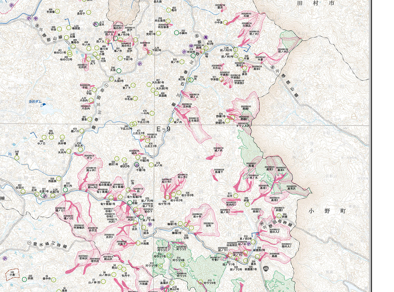 地すべり防止区域・・・地すべり等防止法(昭和33年3月31日法律第30号)第3条に基づき、地すべりによる崩壊を防止するための施設を設置するとともに、一定の行為を制限する必要がある土地として、農林水産大臣または国土交通大臣が指定した区域です。