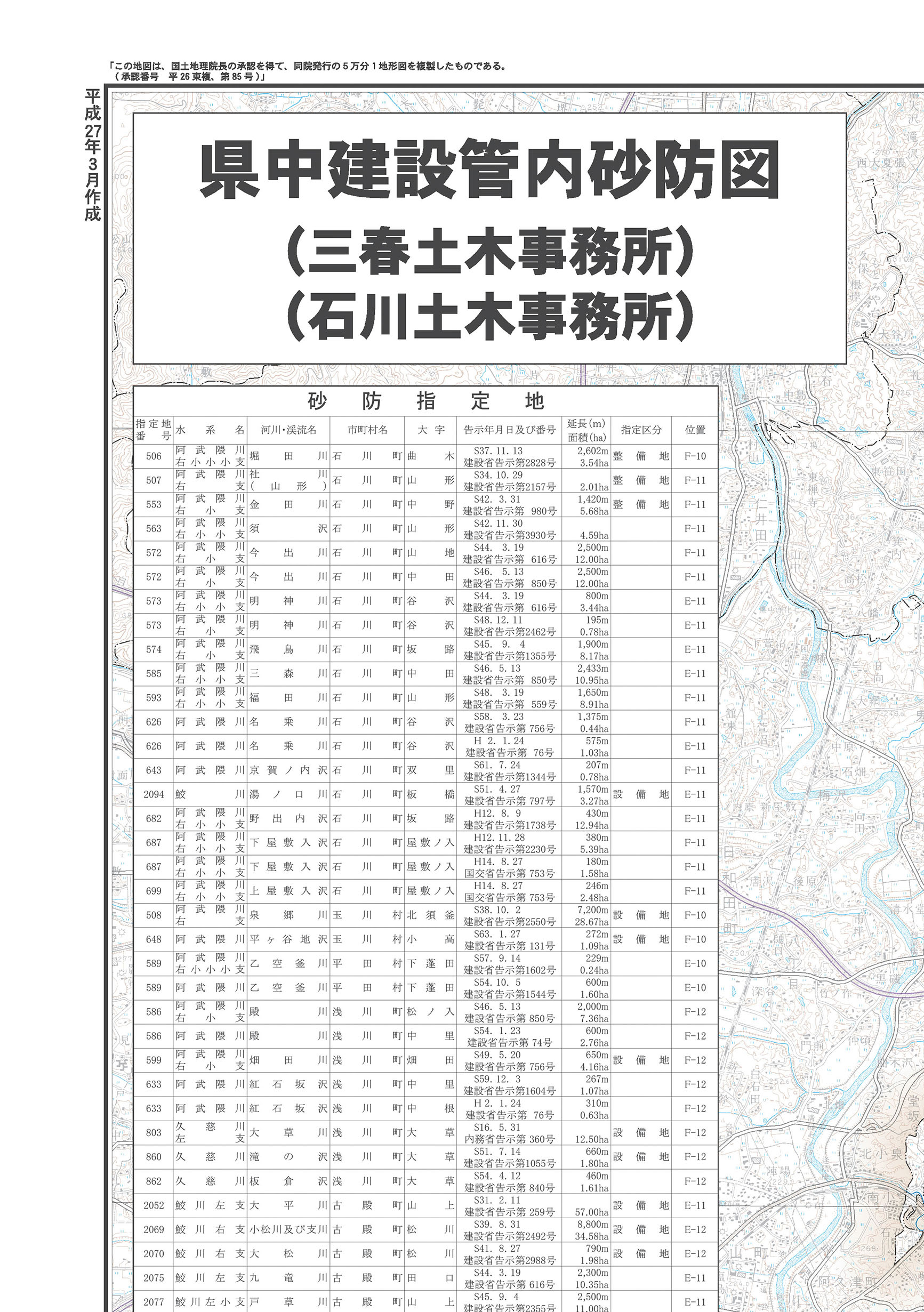 県中建設管内砂防図(三春土木事務所)(石川土木事務所)