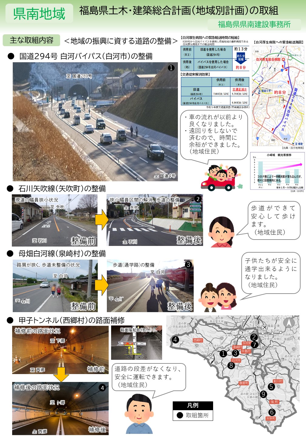 福島県土木・建築総合計画【県南地域】の主な取組を紹介します。