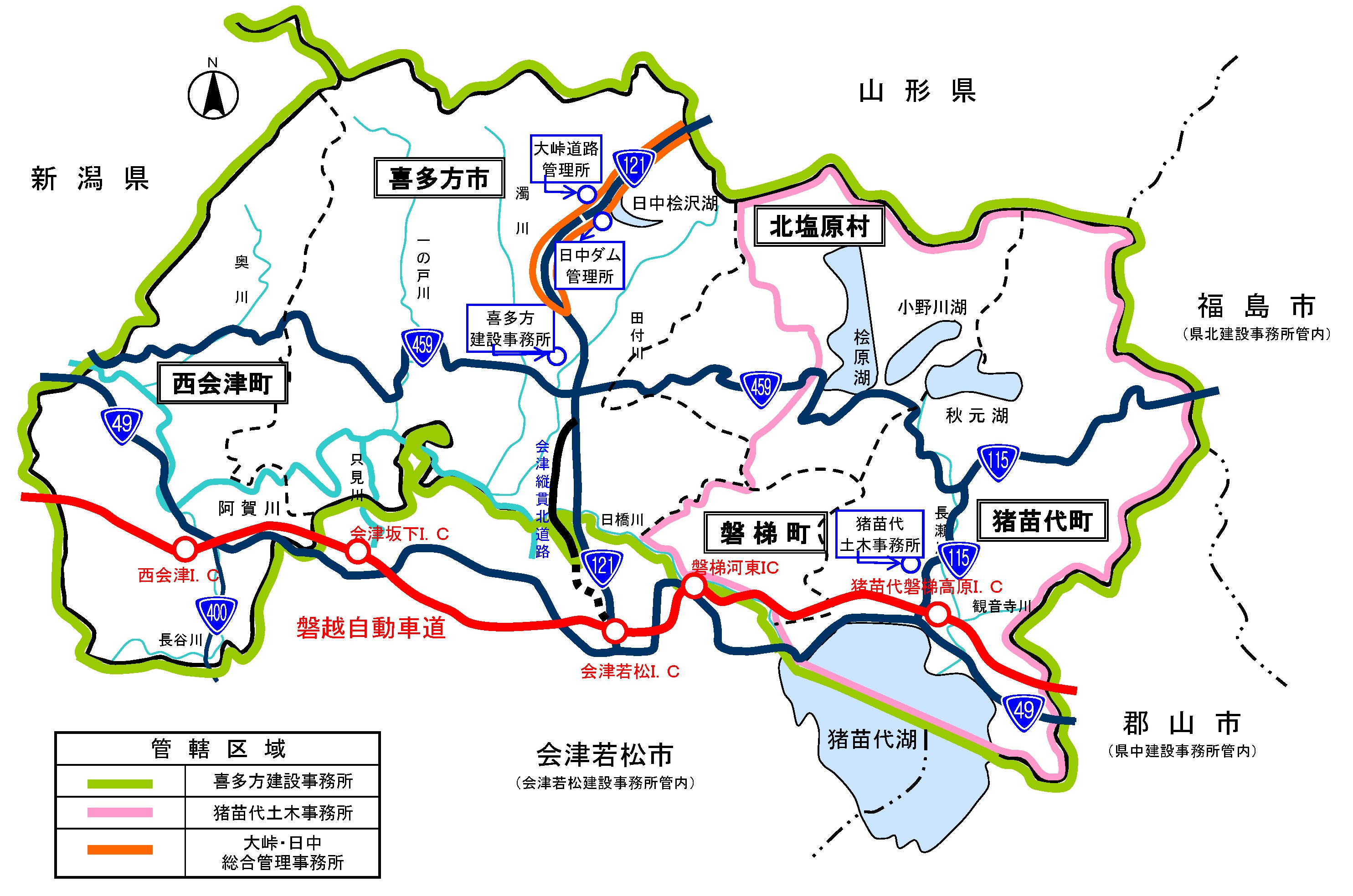 | 業務課 | 土木施設の維持管理、調査、計画、設計、監督及び除雪事業、並びに災害復旧に関すること。 裏磐梯三湖(桧原湖、小野川湖、秋元湖)及び十六橋水門の管理。 | 62-3102 |