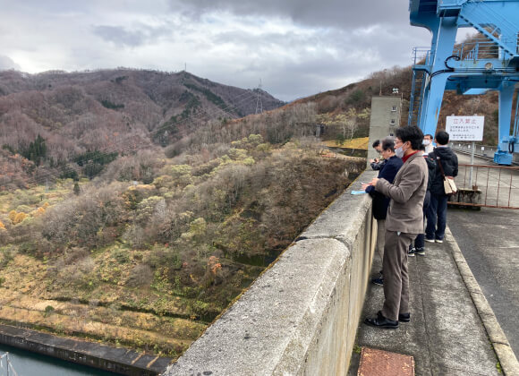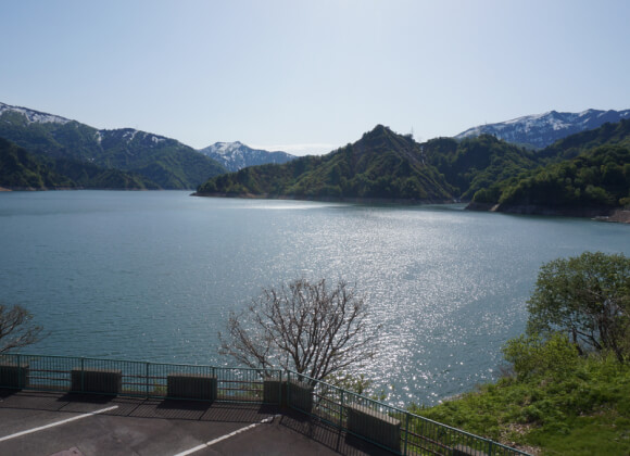田子倉ダムは、延べ300万人の人員と約348億円の費用をかけて昭和36年に竣工したダムです。田子倉湖に貯えられた約5億トンの水を利用して、ダム直下にある発電所で4台の水車発電機を運転しています。田子倉湖はイワナ、サクラマスが釣れる人造湖としても有名です。