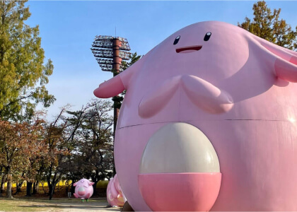 ふくしま応援ポケモンの「ラッキー」に出会える公園です。高さ6mの巨大ラッキーは一見の価値あり!ラッキー公園のある開成山公園は桜の名所としても知られています。