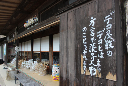 郡山市西田町高柴は、郷土玩具である三春駒や三春張子人形の発祥の地。4軒の職人の家が今も数百年の伝統を守り、張子人形や張子面、三春駒などを作り続けています。絵付け体験も人気。昼食はダッタンそば茶を使用したソフトクリームが人気の「おいち茶屋」へどうぞ。