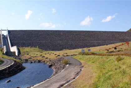 栃木県との県境近くに位置し、日光国立公園那須地区に隣接する緑豊かな自然環境に恵まれた場所にある堀川ダム。ダム湖である「まぶね湖」には春の新緑や秋の紅葉、那須連峰の山並みが湖面に映え、美しい景観を誇ります。事前に予約するとダム内部の見学が可能です(団体のみ)。