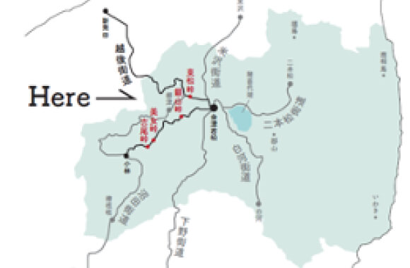起点の大町四ツ角は、会津藩の法度や掟などを人々に知らせるために書き記した木の札(高札)が掲げられていた高札場で、そのため札の辻と呼ばれています。会津銀山街道は県道でありながら、車が通ることができません。銀山峠、石上峠、美女峠、吉尾峠を通り、只見町小林へと続く銀山街道は、県道でありながら、車が通ることができない「歩く県道」なのです。