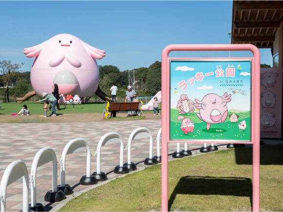 全国初となるポケモンをモチーフにした公園として道の駅「なみえ」に、2021年12月に開園した「ラッキー公園 in なみえまち」。ふくしま応援ポケモンである「ラッキー」をはじめ、「ベロリンガ」「ピィ」「ププリン」「キャモメ」「ピンプク」「ピカチュウ」など、さまざまなポケモンたちが公園遊具のモチーフとなっています。『Pokémon GO』で遊んでいる人は、野生の「ラッキー」に出会えるかも?また、道の駅にはポケモンの絵が描かれたマンホール蓋『ポケふた』もあるので探してみて!