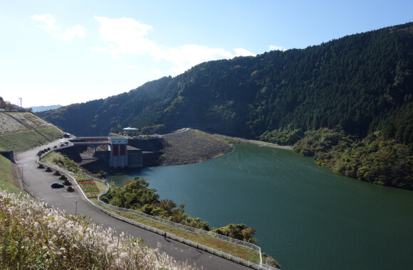 四時ダムは、ダム堤体から太平洋を望むことのできる多目的ダムです。春は桜、秋は紅葉と、ダム周辺の木々と湖水が織りなす四季折々の絶景が、訪れる人々に憩いと安らぎを与えてくれます。ダム堤体から右岸の山に向かって「ヤッホー」と呼びかけると「ヤッホー」と答えてくれる”やまびこ”も四時ダムの名物。また、ダム監査廊に沸く湧き水は「四時の銘水」として親しまれており、地元住民だけでなく県外からも多くの方が水を汲みに訪れます。事前にご予約いただければ、施設職員が管理所やダムの内部をご案内します。