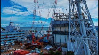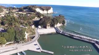 ◆この動画は平成28年12月16日に工事現場上空からドローンにより撮影したものです。◆福島県いわき市小浜地区は、地震・津波により海岸・漁港施設に被害を受け、復旧工事が行われています。 上空からの映像...