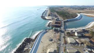 ◆この動画は平成28年12月21日に工事現場上空からドローンにより撮影したものです。◆福島県いわき市仁井田地区は、地震・津波により海岸・河川施設に被害を受け、復旧工事が行われています。 上空からの映...