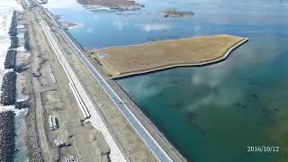 ◆この動画は平成28年12月16日に工事現場上空からドローンにより撮影したものです。◆福島県いわき市永崎地区は、地震・津波により海岸施設に被害を受け、復旧工事が行われています。 上空からの映像では、海...