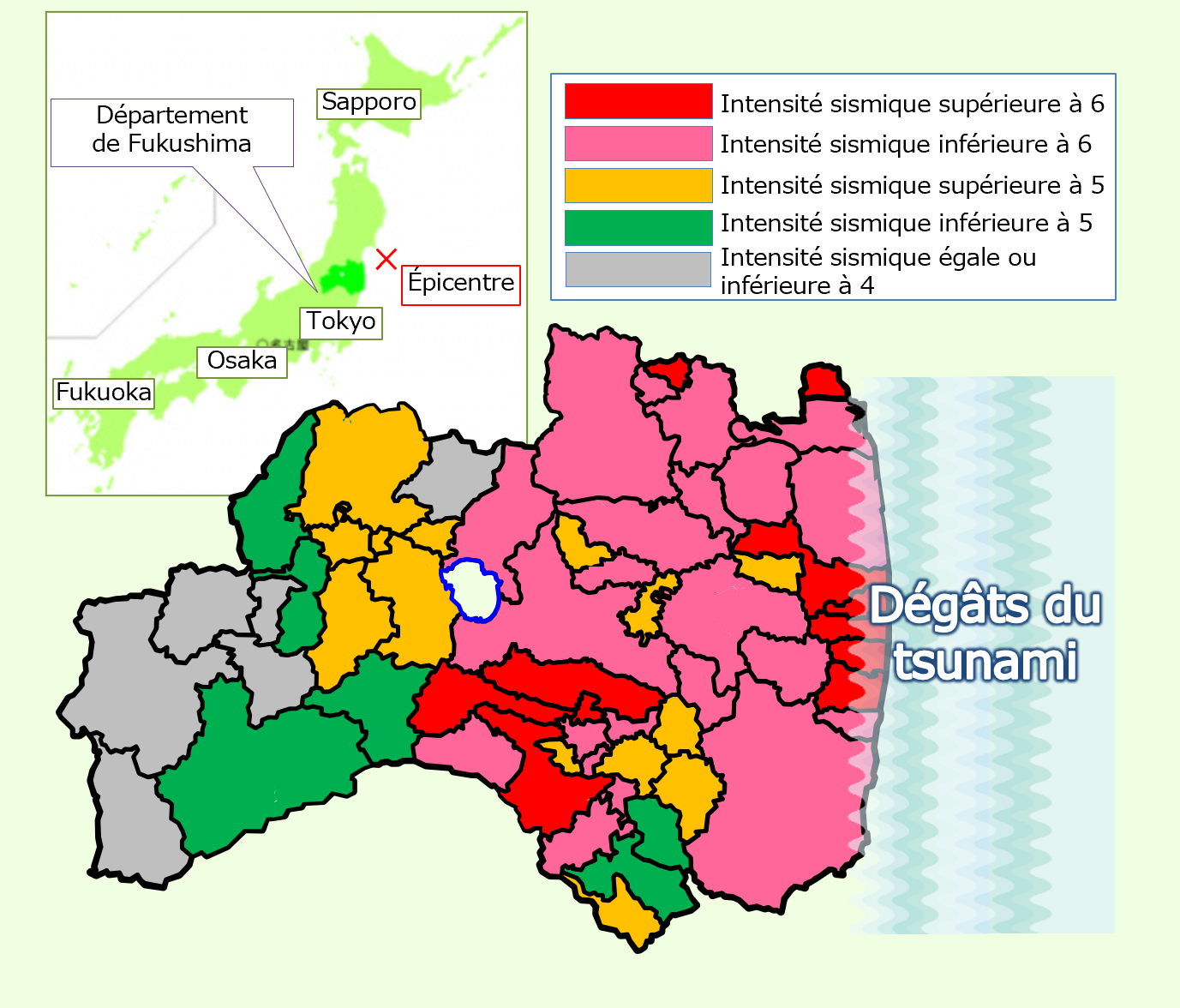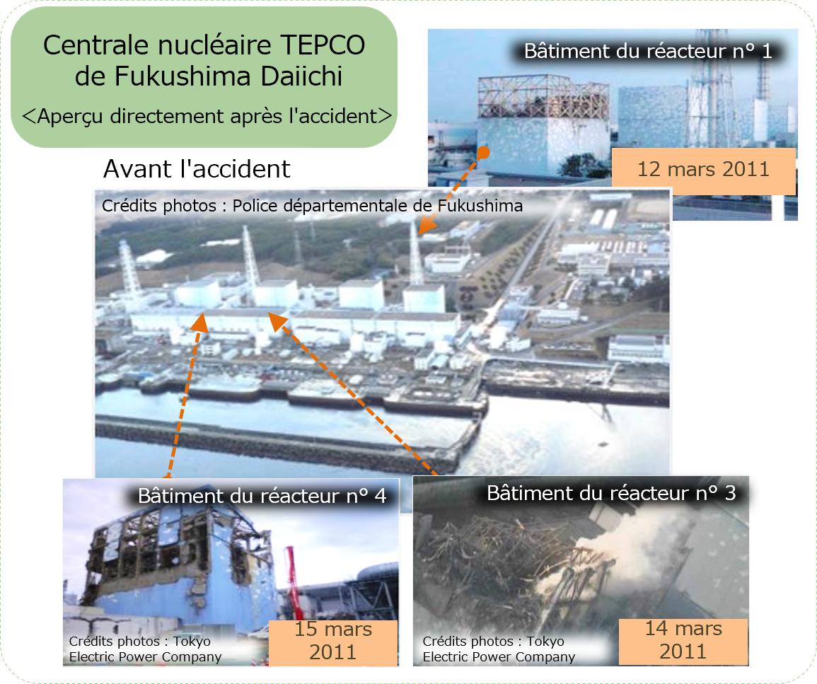 Suite au tremblement de terre, la centrale nucléaire Fukushima Daiichi, exploitée par la Compagnie d'électricité de Tokyo (TEPCO), a été coupée de son alimentation externe. Le tsunami qui a suivi a rendu les systèmes d'alimentation d'urgence inutilisables, empêchant ainsi le fonctionnement des dispositifs de refroidissement des réacteurs des unités 1 à 3.