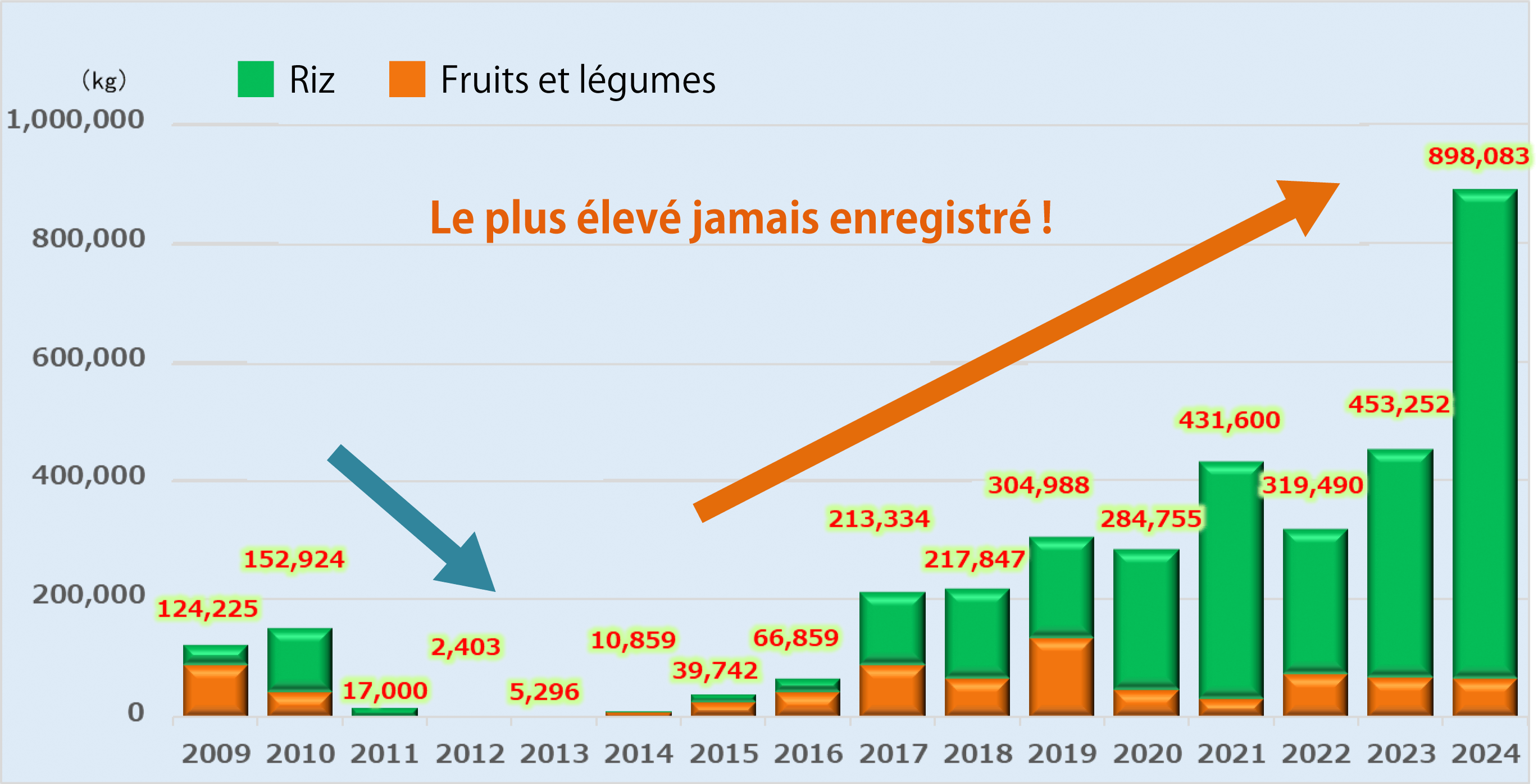 En comparaison avec le niveau pré-désastre, l'exportation a augmenté et atteint un chiffre record en année fiscale 2024.
