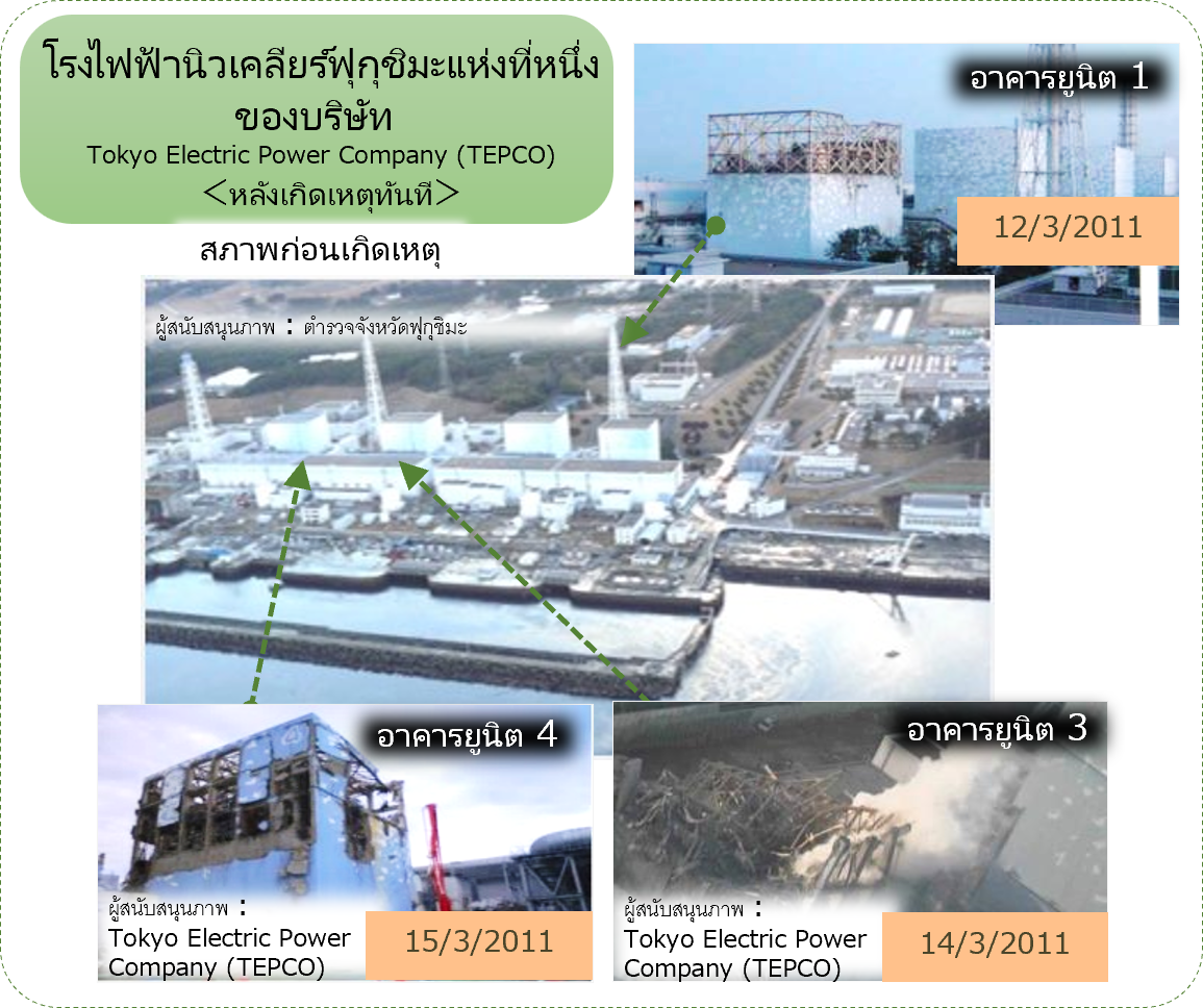โรงไฟฟ้านิวเคลียร์ฟุกุชิมะแห่งที่หนึ่งของบริษัท Tokyo Electric Power Company (TEPCO) สูญเสียแหล่งจ่ายพลังงานไฟฟ้าจากภายนอกเนื่องจากแผ่นดินไหว และสึนามิที่ตามมาส่งผลให้แหล่งจ่ายพลังงานไฟฟ้าฉุกเฉินใช้ไม่ได้ ทำให้ไม่สามารถใช้งานอุปกรณ์หล่อเย็นของเตาปฏิกรณ์หมายเลข 1 ถึง 3 ได้