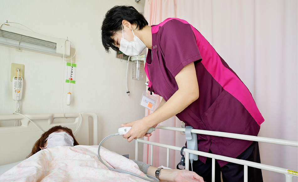 看護師の仕事は、器具が新しくなったり、薬の名前が変わったりと日々変化しているので、学ぶ心を忘れず勉強を続けながら患者さんの役に立ちたいと思っています。(米畑さん)