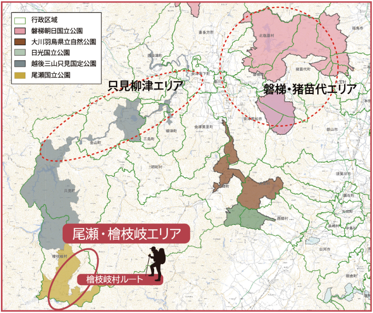 | 尾瀬国立公園の玄関口。鎮守の森の歌舞伎舞台など、厳しい自然と共に生きてきた山村独自の知恵や文化を知り、集落のたたずまいをめぐるコース。 |