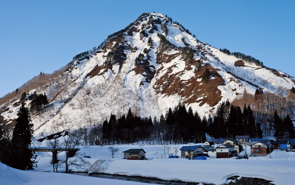 只見川源流域では、広大なブナの自然林や、急峻な山々に降り積もった雪が雪崩となって山体の斜面に刻む「雪食地形」が混然一体となった山岳景観が広がっており、この独特の景観は、「会津のマッターホルン」と呼ばれる蒲生岳にも見られます。