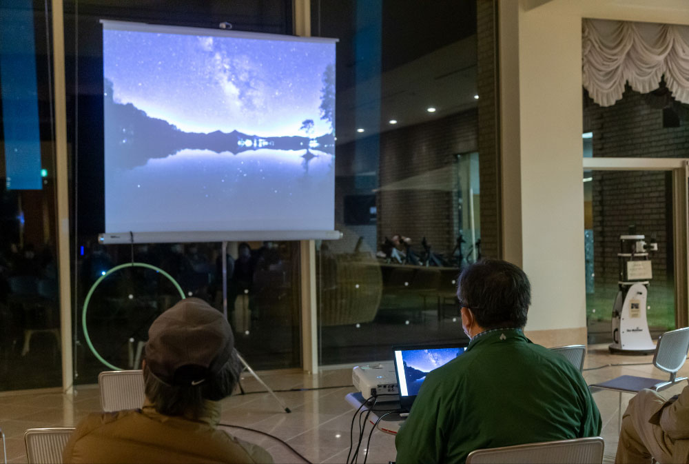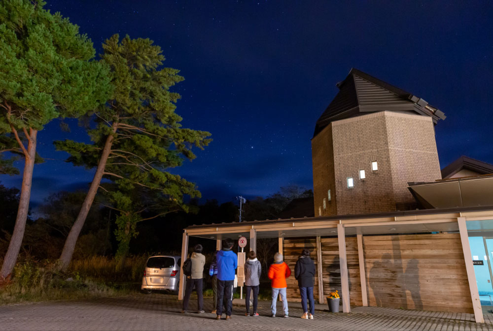 標高800mの平坦な高原に位置する休暇村裏磐梯。その敷地内では「星空さんぽ」が楽しめます。ガイドさんの楽しい解説を聞きながら眺める空は、まさに満天の星空。季節によって見える星々が変わり、飽きることはありません。