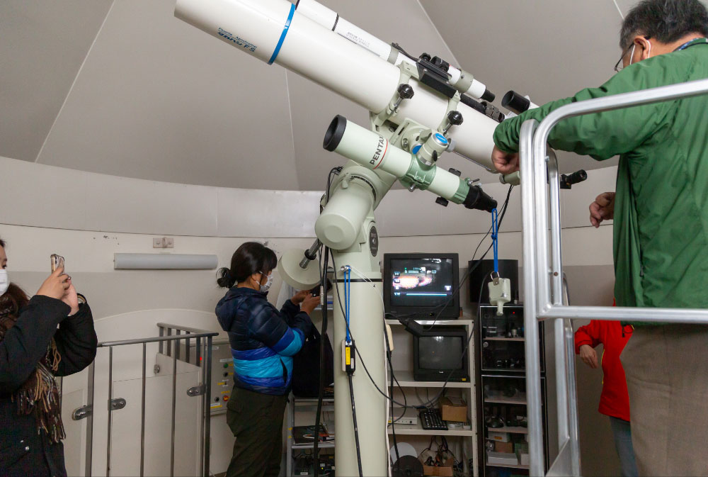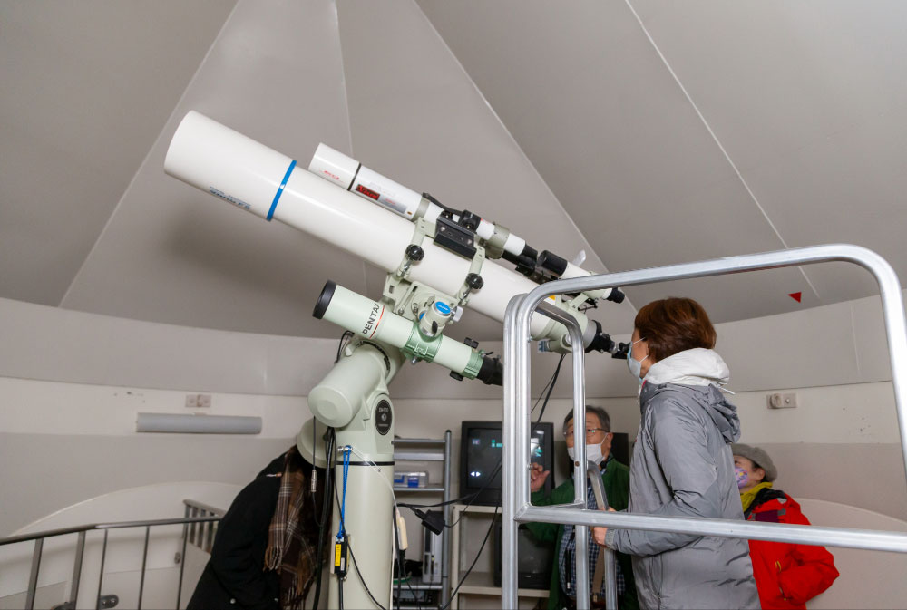 敷地内には、360度電動回転式の八角天体ドーム天文台も。天体望遠鏡では、季節や天候によって月のクレーターや土星の環も観察することができます。