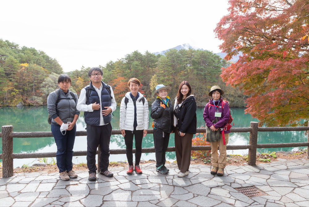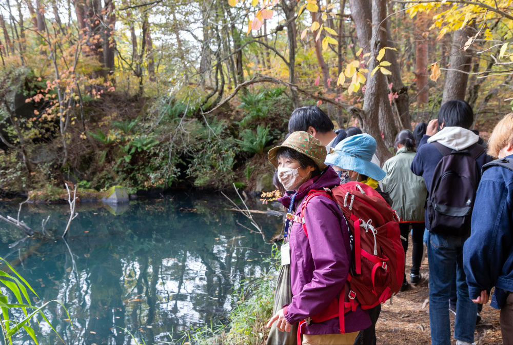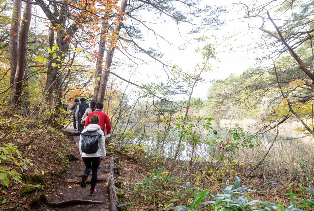 磐梯山の噴火によって生まれた「神秘の湖沼」五色沼をガイドさんとともに巡る約1時間30分のウォークツアー。「四季折々の神秘的な湖沼が見られるのは裏磐梯ならでは。」と自然の成り立ちや噴火の歴史などをガイドさんから伺いました。