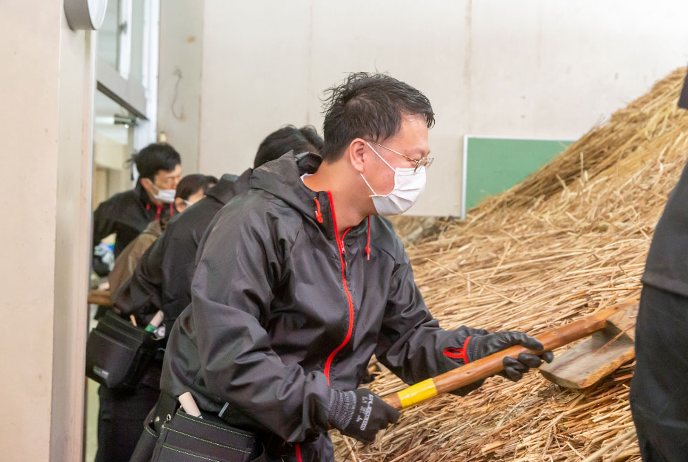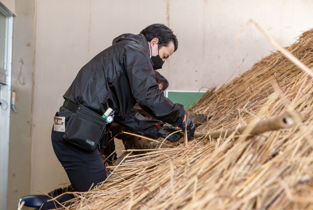 本家叶屋の11代当主である阿部さんは、茅葺職人の高齢化が進む中、地域内の担い手有志による大内宿「結いの会」に参加し、茅葺きの技術継承や大内宿の自然・文化資源の維持に努めるなど、大内宿の伝統文化を将来につなぐための取組に力を注いでいます。