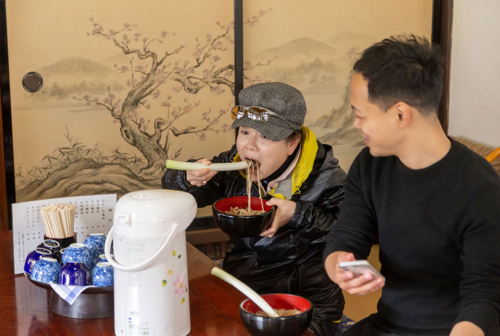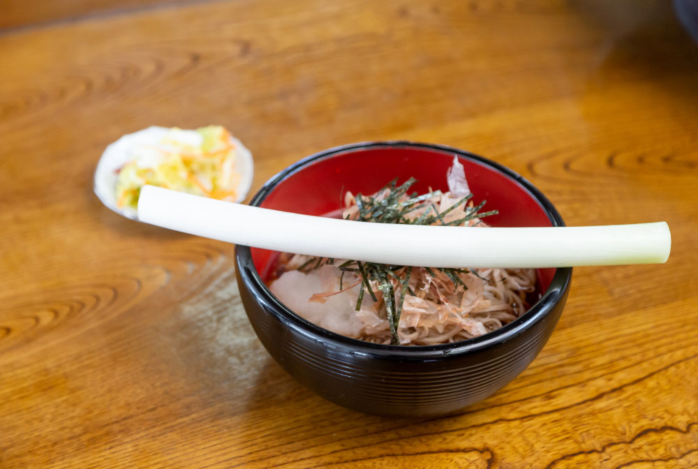 茅葺き体験の後は、「大黒屋」にて大内宿名物の「ねぎ一本そば」をいただきました。