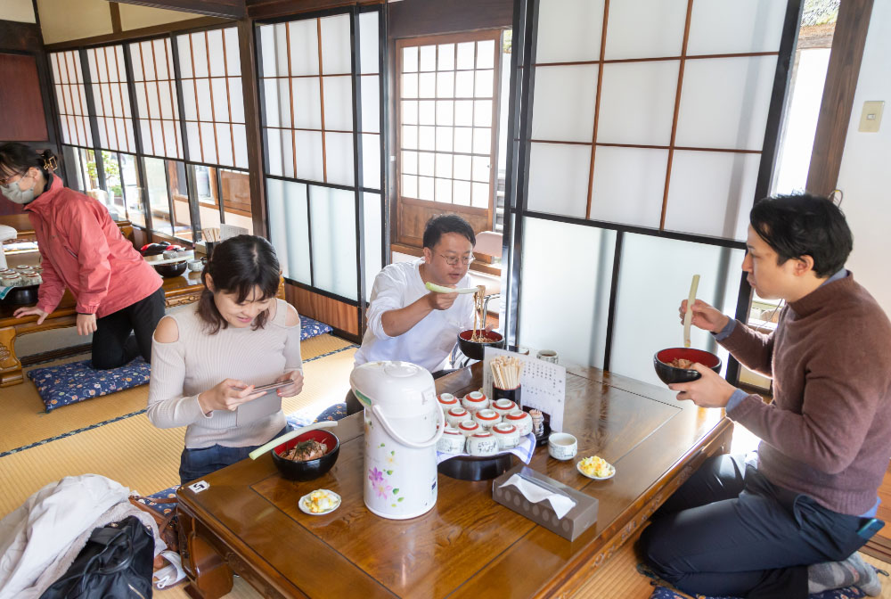 参加者からは、『伝える人がいなくなってしまったら、このすばらしい風景も消えてしまう。こうした茅葺き体験を通して、多くの人に大内宿の文化が伝わっていくといいですね。』『売らない・貸さない・壊さないという住民憲章を守りながらも、cafeや物販店など新しい手段で集落の魅力を発信している努力が素晴らしい。』『伝統的な茅葺きの家屋の中で家主さんたちがどんな風に現代的な暮らしをしているのか興味があります。茶の間や台所など見てみたい。』などの感想がありました。