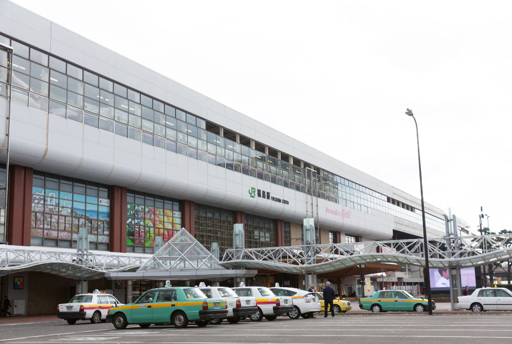 福島県内における鉄道の要衝でもある福島駅。磐梯朝日国立公園への東の玄関口でもあり、東京からは新幹線で約1時間30分の近さ。最初の目的地、土湯温泉まではここから車で約30分の位置にあります。