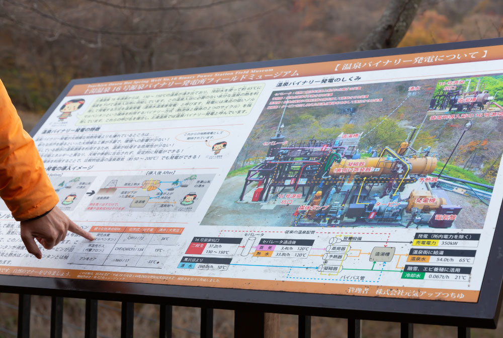 「風評被害に苦しむ福島に住む我々ですから、再生可能エネルギーでまちを元気にしたいと思っていました。バイナリー発電は、発電に使った温泉を温泉街に供給する無駄のないシステム。これにたどり着いたことで、地元からの反対はありませんでした。しかも、地元からの出資や、各方面からの協力もたくさんありました。「元気アップつちゆ」は、いわば発電事業の協同組合。発電した電気は地元で使われるとともに、オニテナガエビの養殖やどぶろく醸造所などの新規事業にも使われています。また、売電による利益も地元の人材育成費等に還元しています。」