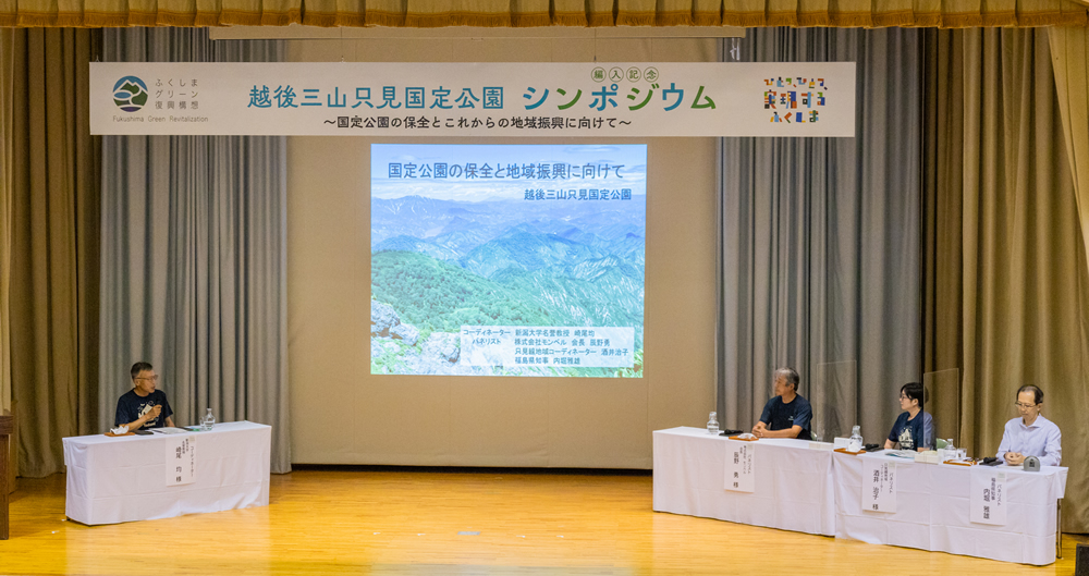 越後三山只見国定公園の編入を記念して令和4年7月13日に開催された「越後三山只見国定公園編入記念シンポジウム」では、国定公園の魅力と、これからの保全や地域振興に向けた取組について、登壇者がそれぞれの思いを語り、およそ100名の参加者が熱心に耳を傾けました。