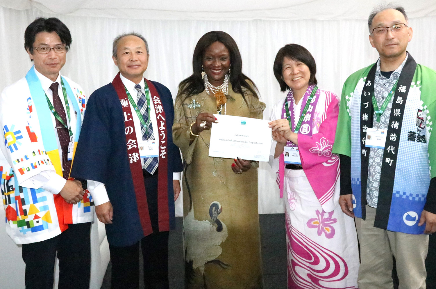 7月26日には、アフリカ大陸ジンバブエ共和国で開催されている「ラムサール条約第15回締結国会議(COP15)」のサイドイベント等において猪苗代湖のPRを実施し、その後、ラムサール条約事務局長との会談が設けられ、3市町及びに県に登録証が授与されました。