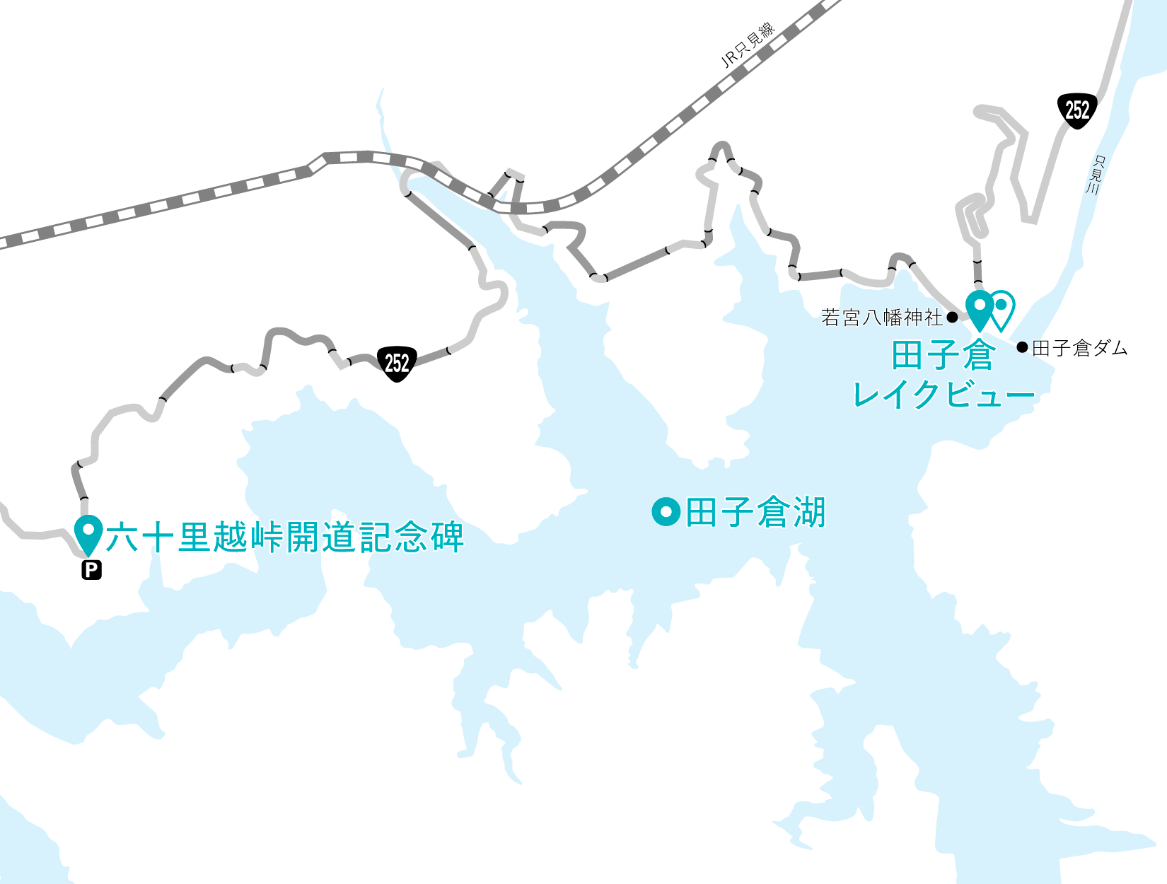 | ポイント | ①県境ポイント・六十里越峠開通記念碑(田中角栄碑)駐車場、②田子倉湖レイクビュー |