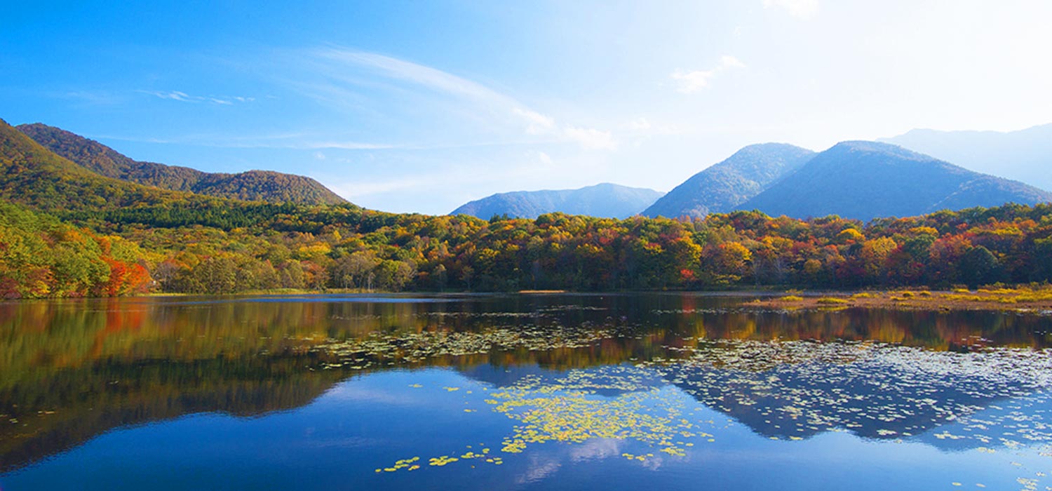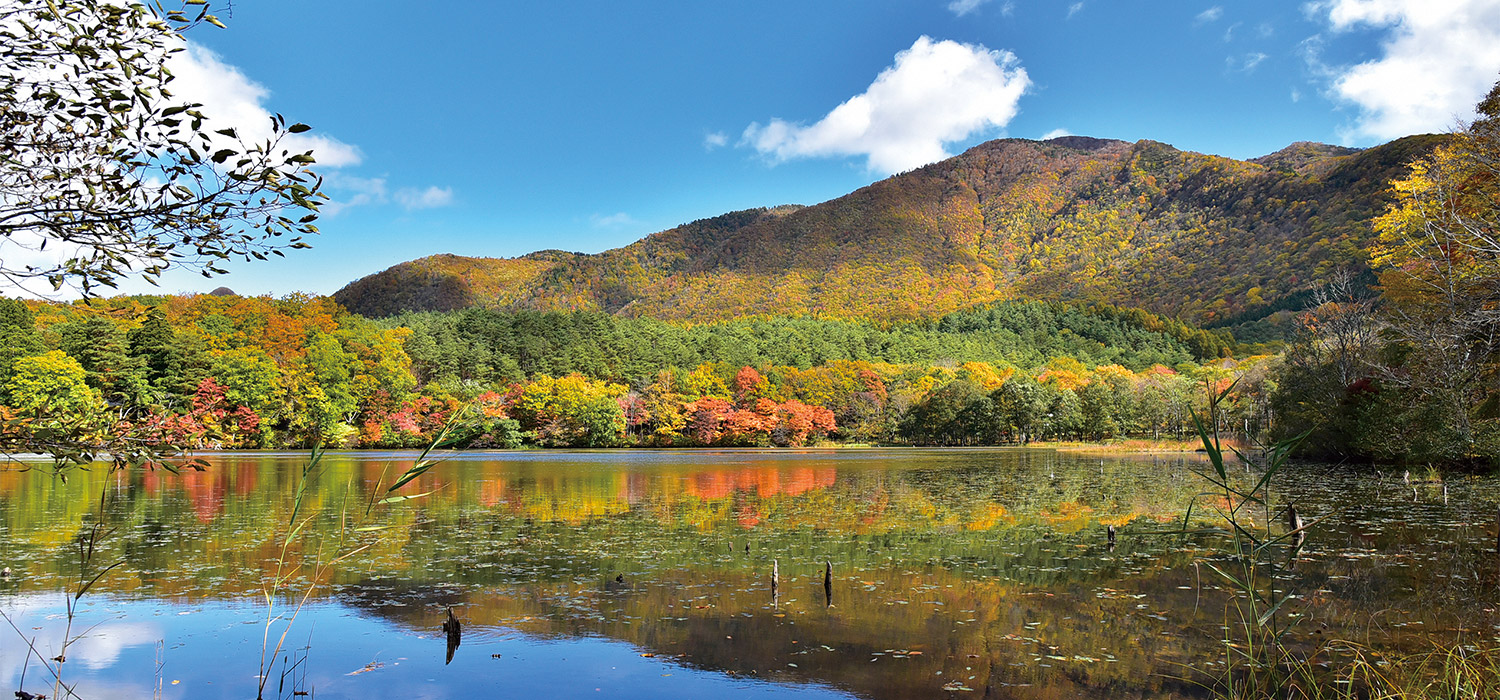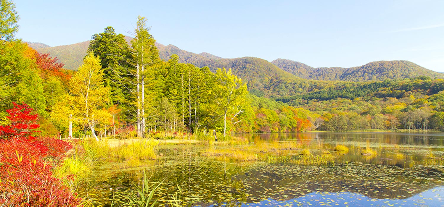 立ち枯れの木やいくつもの浮島、鏡面となって木々や山や空を映し出す水面など、フォトジェニックな要素が揃った公園です。広い駐車場があり、観音沼への遊歩道もよく整備されているため、軽装で気軽に訪れることができます。特に紅葉の美しさは格別で、多くのカメラマンや観光客で賑わいます。