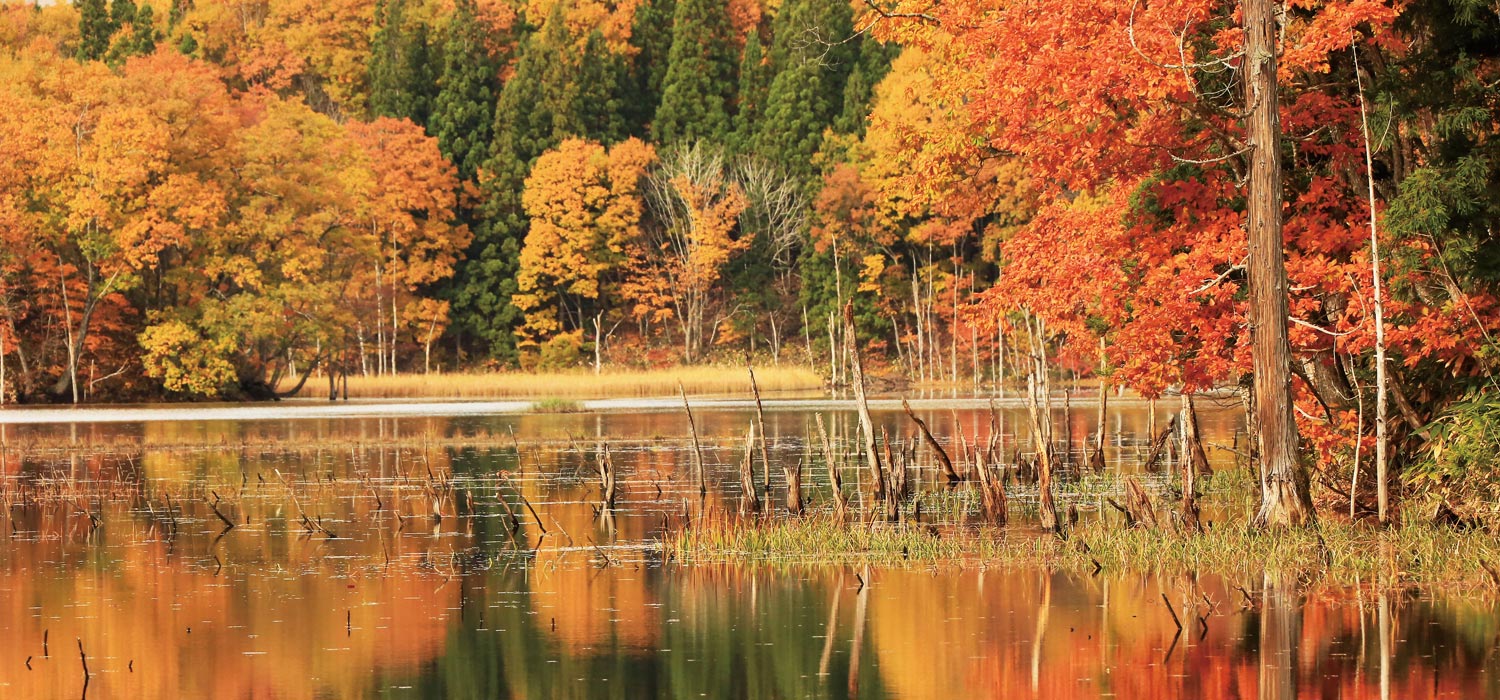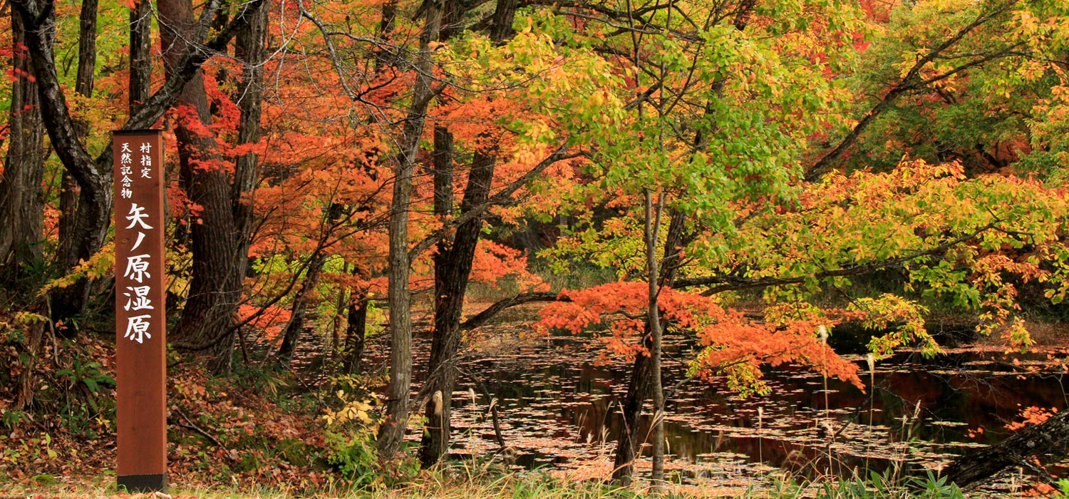 春はミズバショウやミツガシワ、夏はヒツジグサ、秋は美しい紅葉などが見られる矢ノ原湿原は約350種類の動植物が生息し、福島県自然環境保全地域、村の天然記念物にも指定されています。アクセスの良さと歩きやすい一周約40分の遊歩道で、トレッキング初心者にもおすすめです。珍しい野鳥や稀少なハッチョウトンボ、絶滅危惧種のマダラマニワトンボなどにも出会えるかも。不思議な形や色の植物などを探すのも楽しそうです。湿原を渡る木道や湧き水など、気軽に散策を満喫できます。