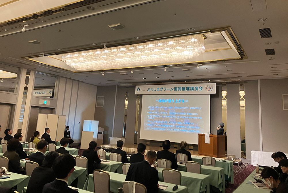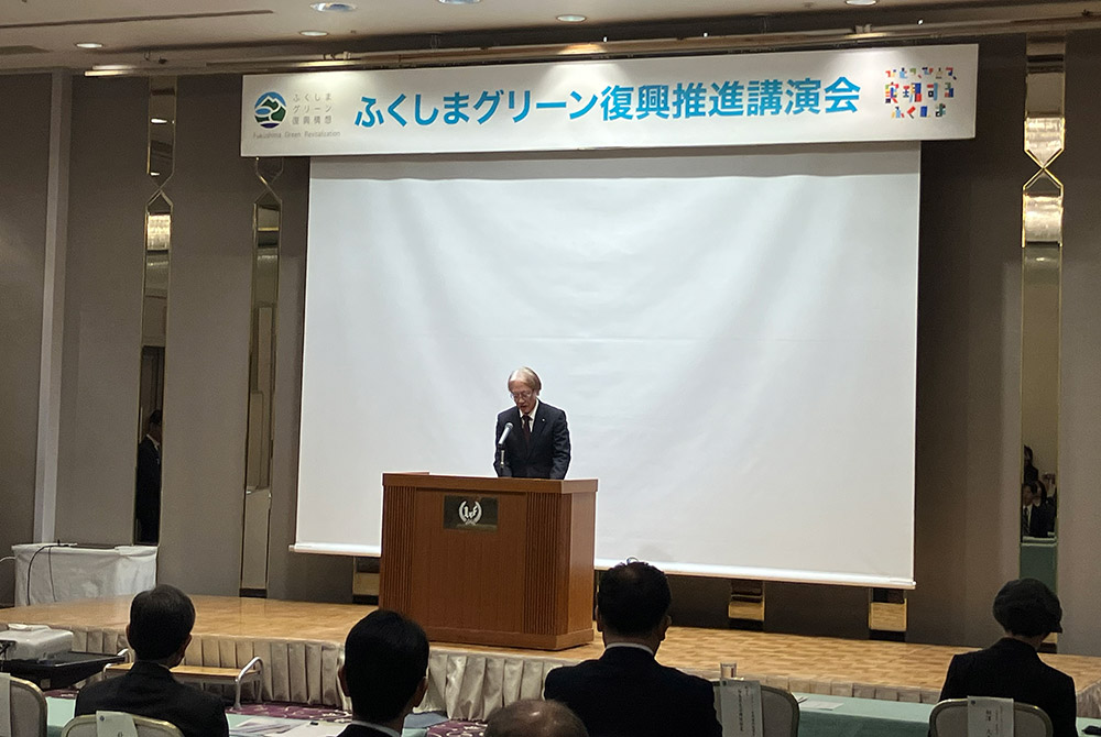2025年11月27日、会津若松市の会津若松ワシントンホテルにて「令和7年度ふくしまグリーン復興推進講演会」が開催され、環境省や県、市町村などの関係者が50名ほど出席しました。