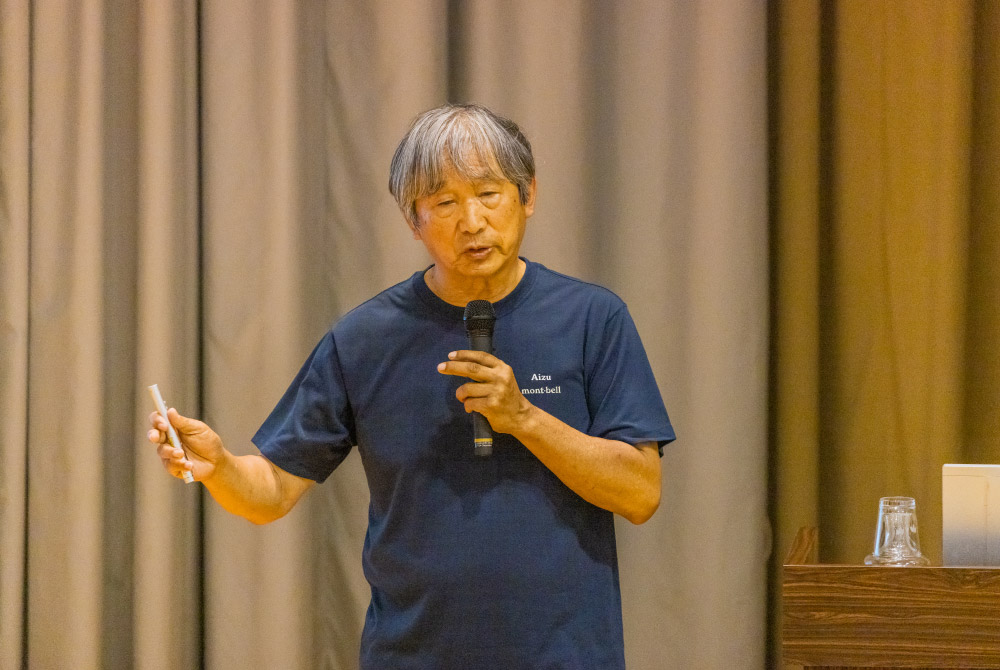 基調講演では、福島県と包括連携協定を結ぶ、株式会社モンベルの代表取締役会長辰野勇氏が「アウトドア7つのミッション」をテーマに、また、福島県復興への活動を続けるタレントのなすび氏が「奥会津の自然の魅力について」をテーマに、それぞれ講演を行った。