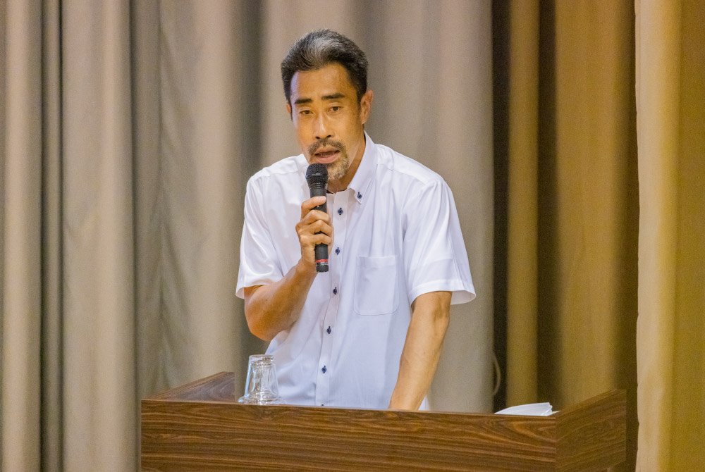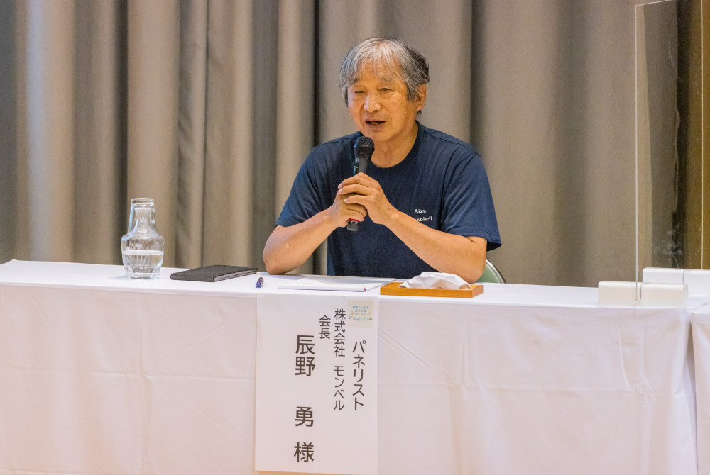 モンベル辰野会長は、創業時からの「モノづくり」への想いや、自然を舞台とした活動を応援する「モンベル・チャレンジ・アワード」などの社会貢献活動について紹介。そして、モンベルの掲げる「7つのミッション」について話した。