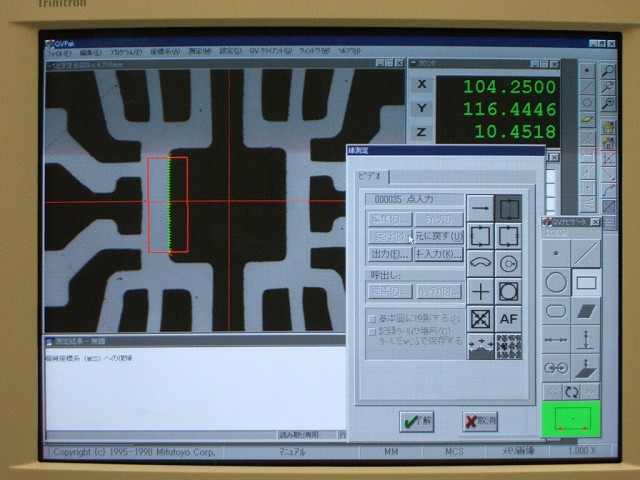 - 機械部品(金属、プラスチック他)などの二次元的な寸法、形状の測定。また、高さ(段差)や平面精度の測定なども可能。