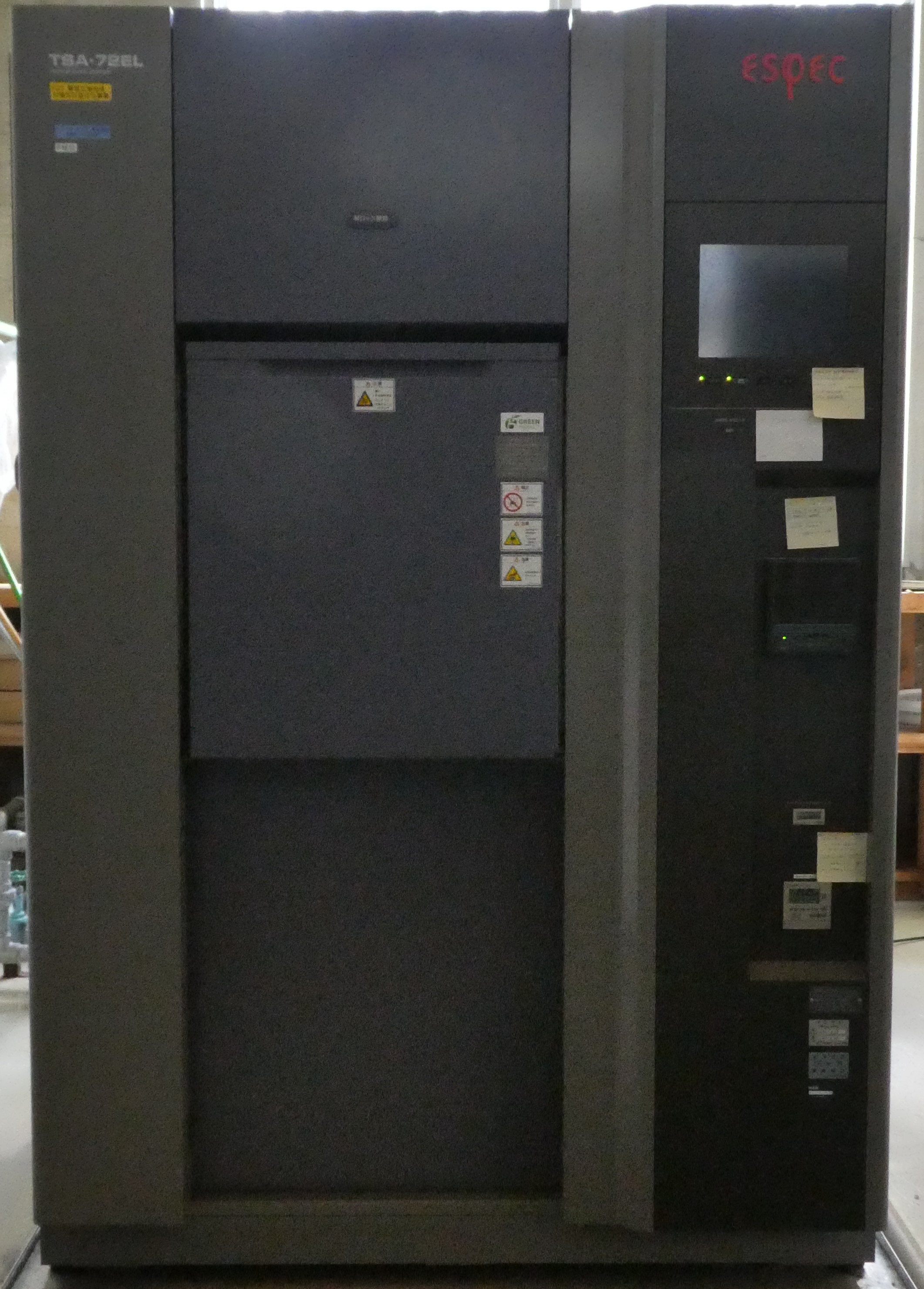 - 試験区分:気相式2ゾーン又は気相式3ゾーン低温側範囲及び精度:−65 ℃〜0 ℃、±2 ℃常温側範囲:室温高温側範囲及び精度:外囲温度+50 ℃〜+200 ℃、±2 ℃試験エリア寸法:41W cm×37D cm×46H cm最大サイクル数:最大9999サイクル試験パターンの設定方法:制御装置に対話型で入力MIL及びJIS等の代表的な試験パターンはメモリー搭載済み